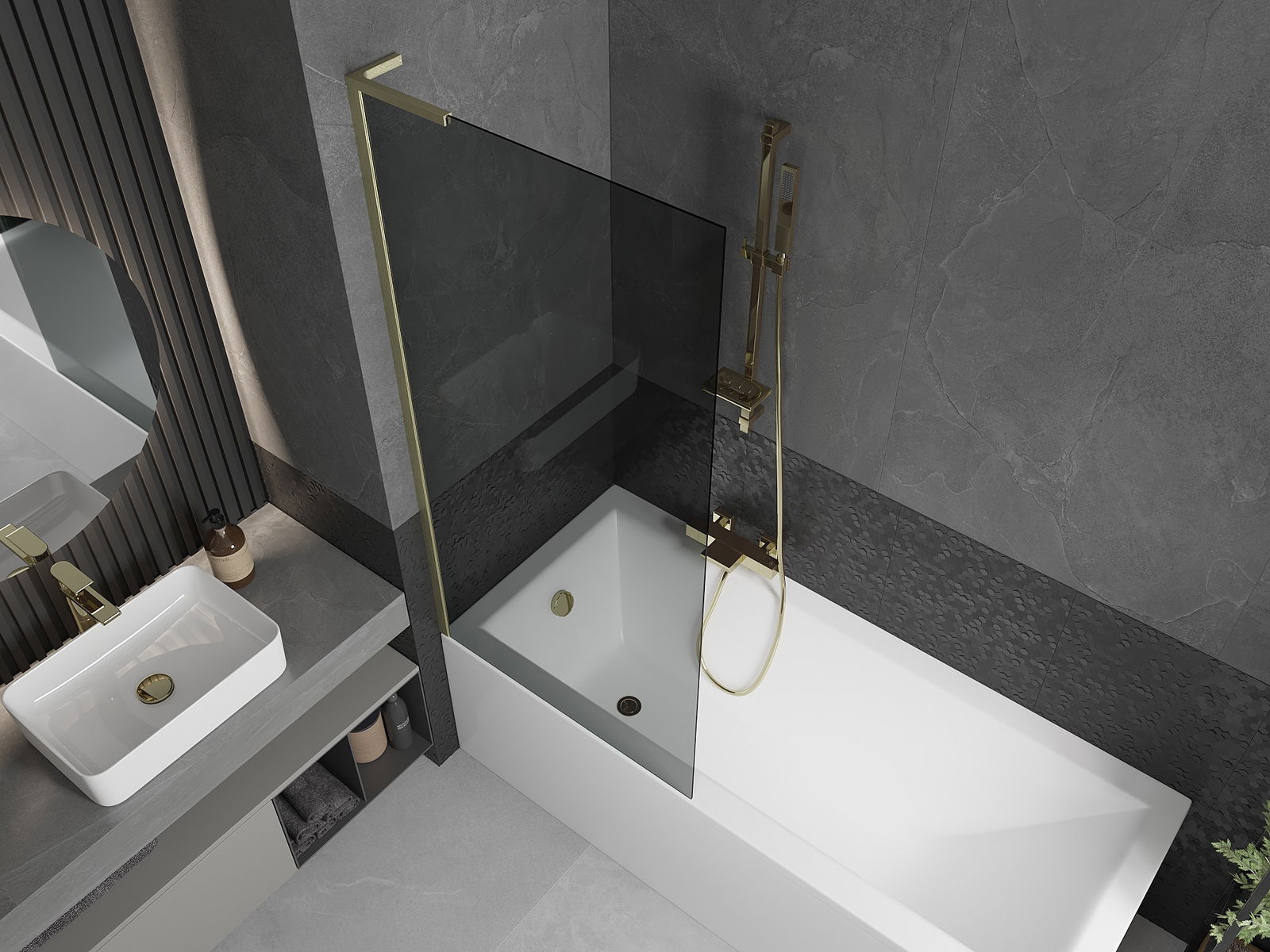 Mexen Next L resguardo de duche com 1 painel 80 x 150 cm, grafite, dourado escovado - 895-080-000-03-40-55