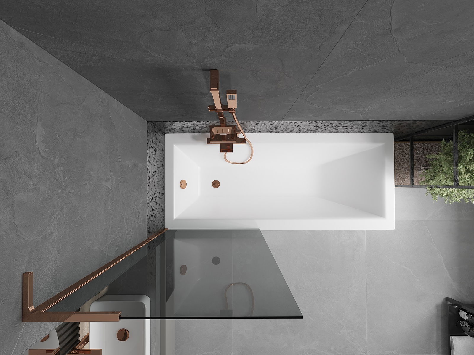 Mexen Next L divisória de banheiro com 1 folha 70 x 150 cm, grafite, ouro rosa - 895-070-000-03-40-60