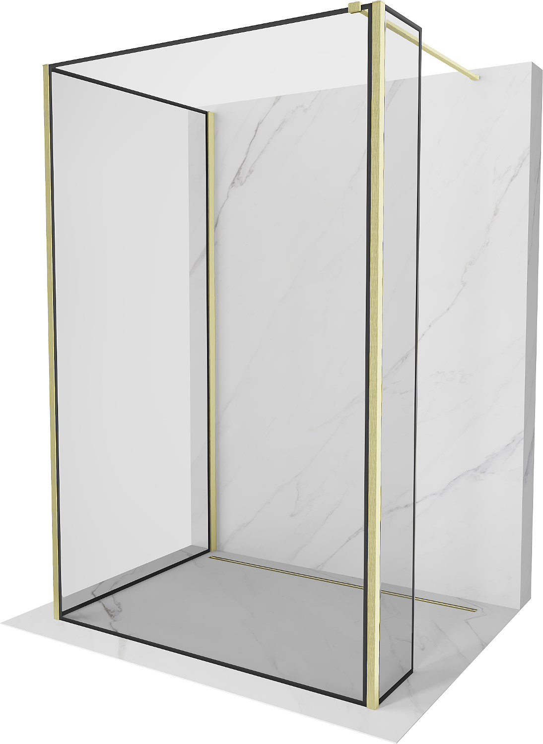 Mexen Kioto parede de duche Walk-in 140 x 80 x 40 cm, moldura preta, dourado escovado - 800-140-080-221-55-70-040