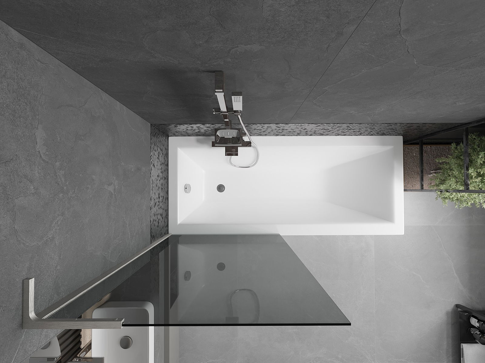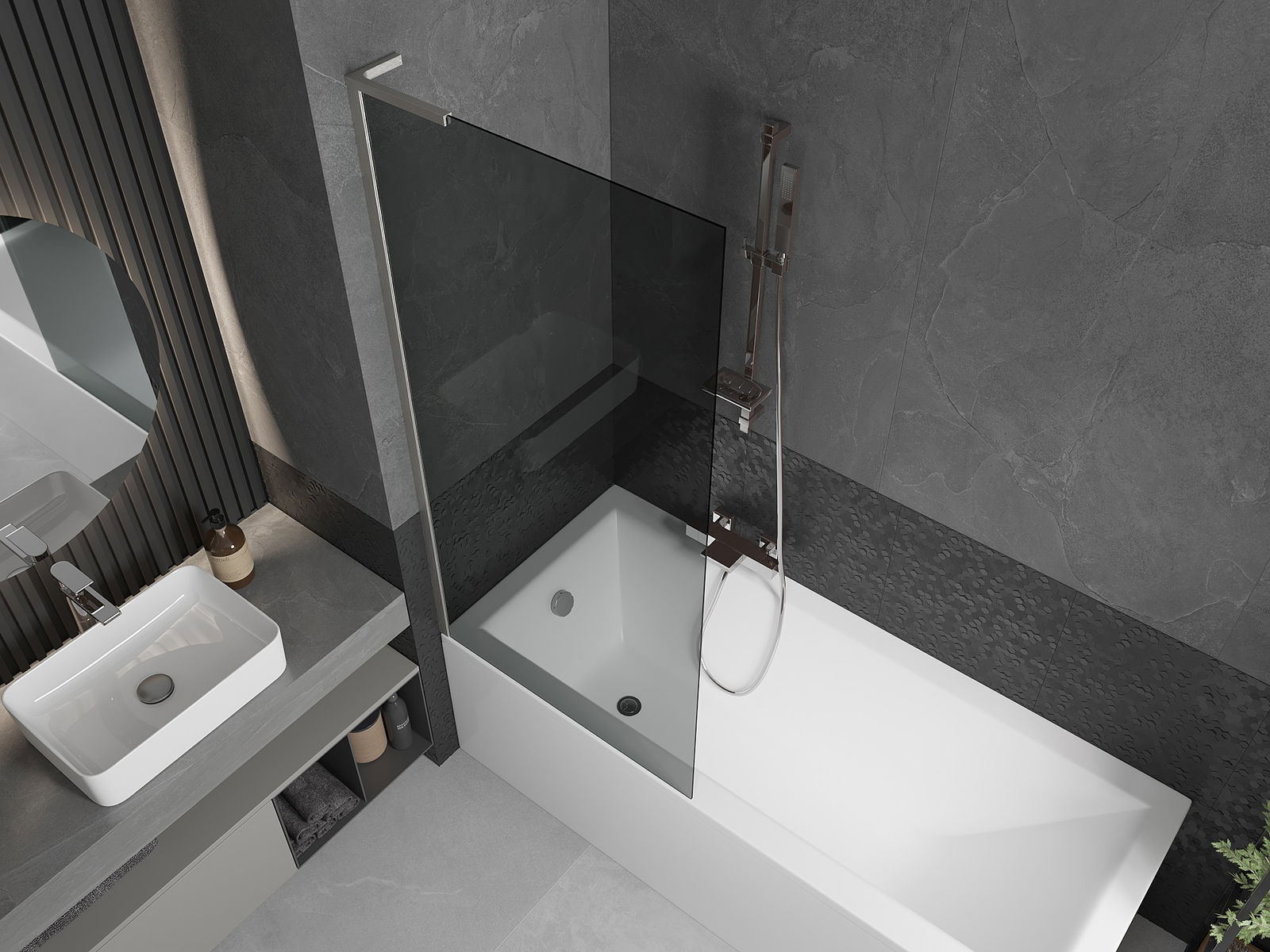 Proteção eficaz contra o derramamento de água durante o banho. O parapeito possui vedações que se ajustam perfeitamente à superfície do vidro e à borda da banheira. Solução funcional que garante segurança e fácil manutenção da limpeza.