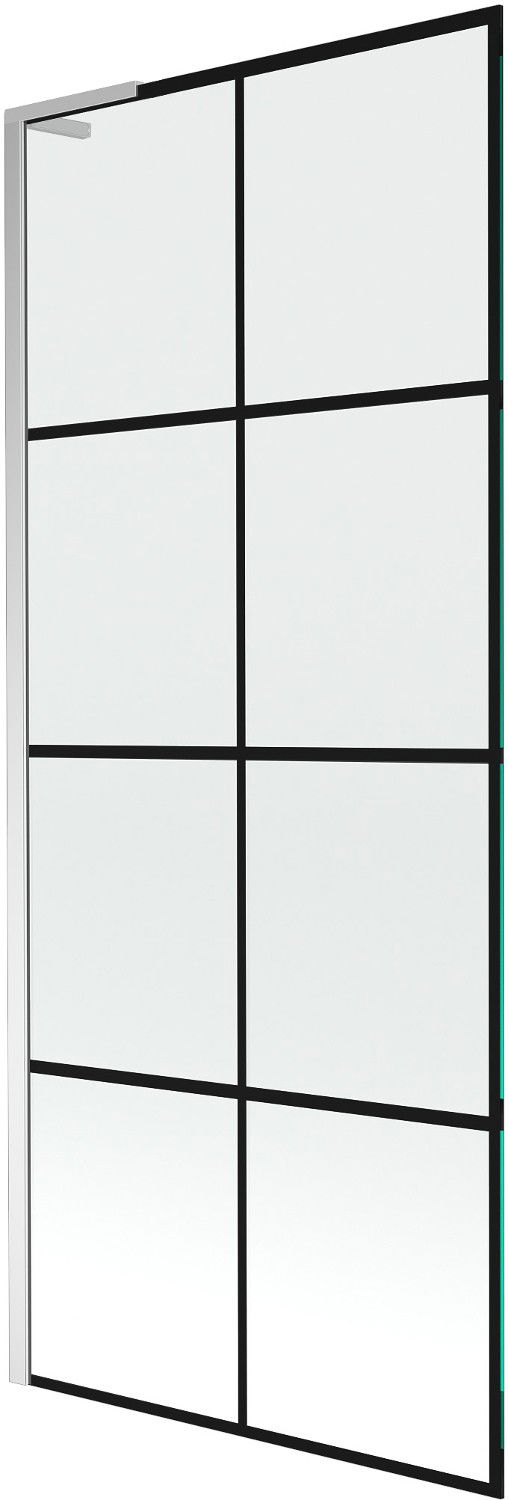 Mexen Next L resguardo de banheira de 1 folha 80 x 150 cm, grade preta, cromado - 895-080-000-03-77-01