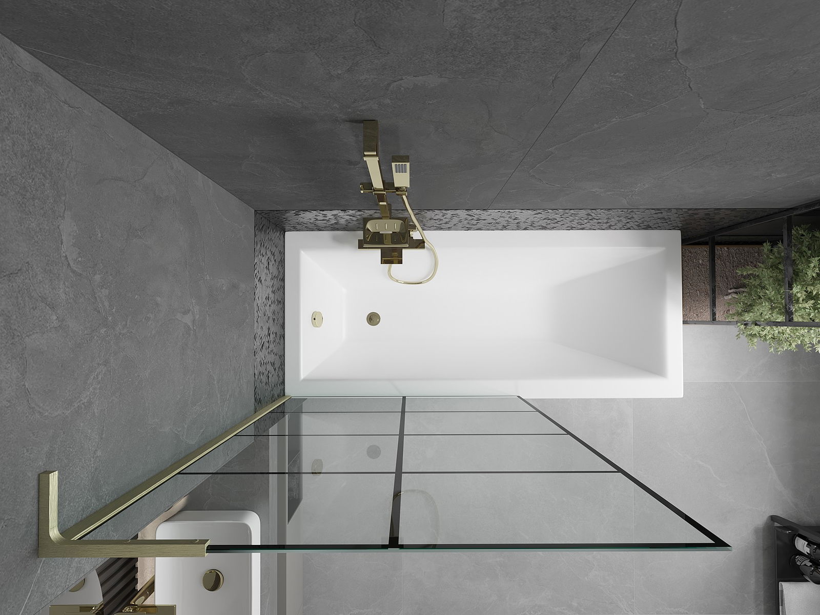 Proteção eficaz contra o derramamento de água durante o banho. O parapeito possui vedações que se ajustam perfeitamente à superfície do vidro e à borda da banheira. Solução funcional que garante segurança e fácil manutenção da limpeza.