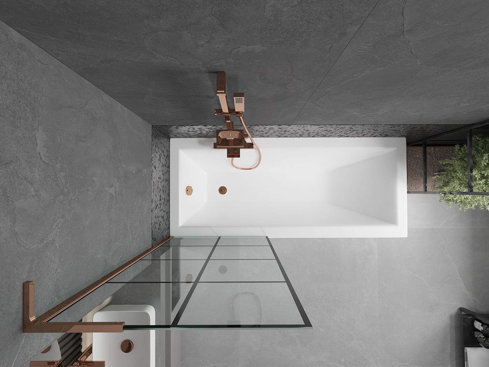 Mexen Next L divisória de banho de 1 folha 70 x 150 cm, grade preta, ouro rosa - 895-070-000-03-77-60