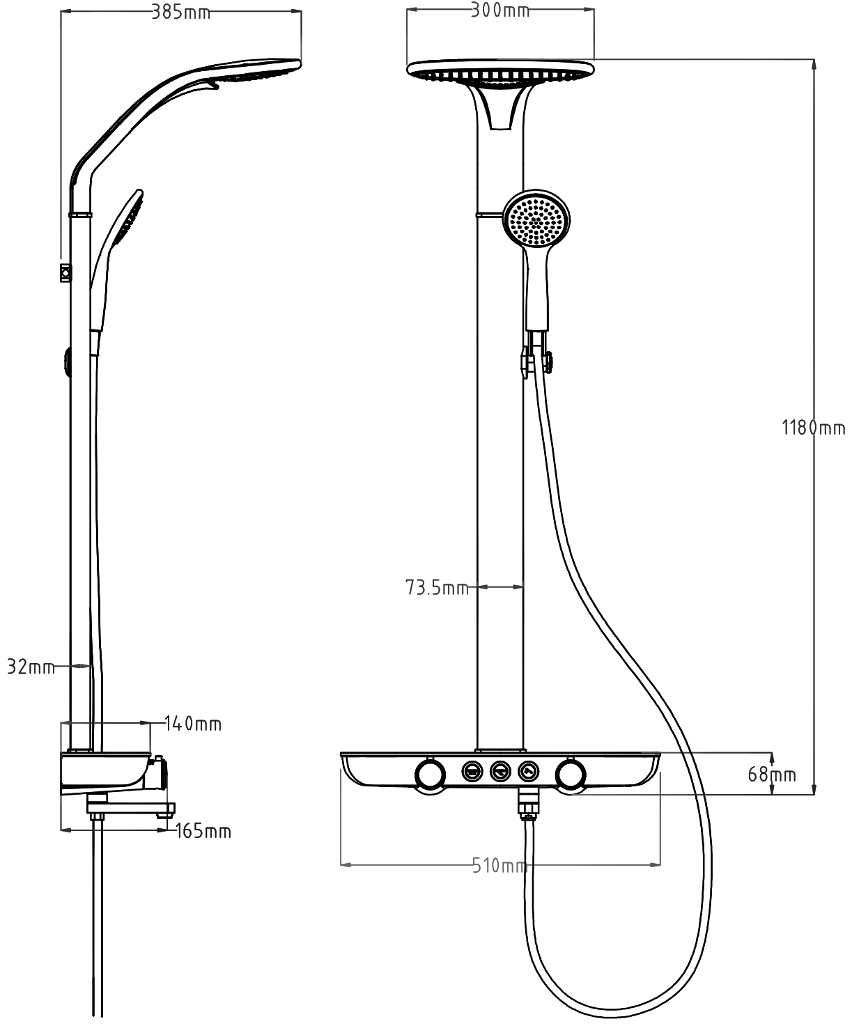 Distância da parede: 385 mm
