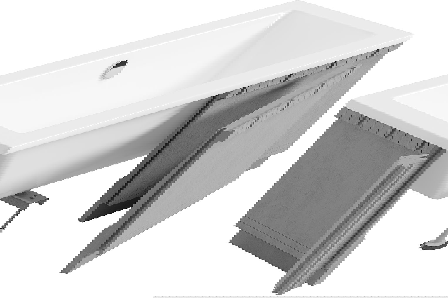 A estrutura possui na parte inferior um recesso para iluminação LED e para os pés, que permite uma utilização confortável da banheira. Esta é uma solução moderna, frequentemente usada no design de casas de banho, que aumenta a funcionalidade e a estética do espaço.
