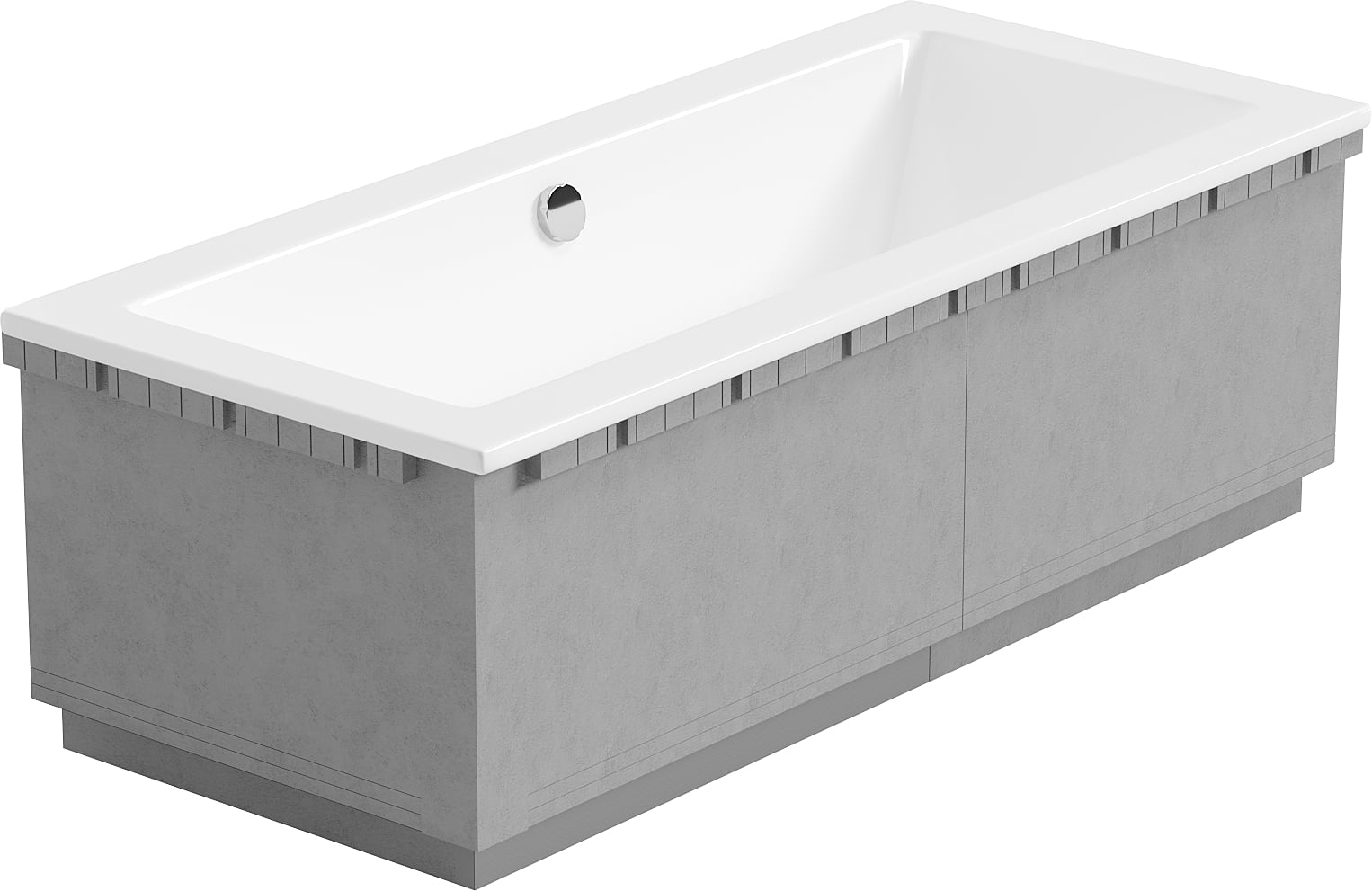 A estrutura possui na parte inferior um recesso para iluminação LED e para os pés, que permite uma utilização confortável da banheira. Esta é uma solução moderna, frequentemente usada no design de casas de banho, que aumenta a funcionalidade e a estética do espaço.