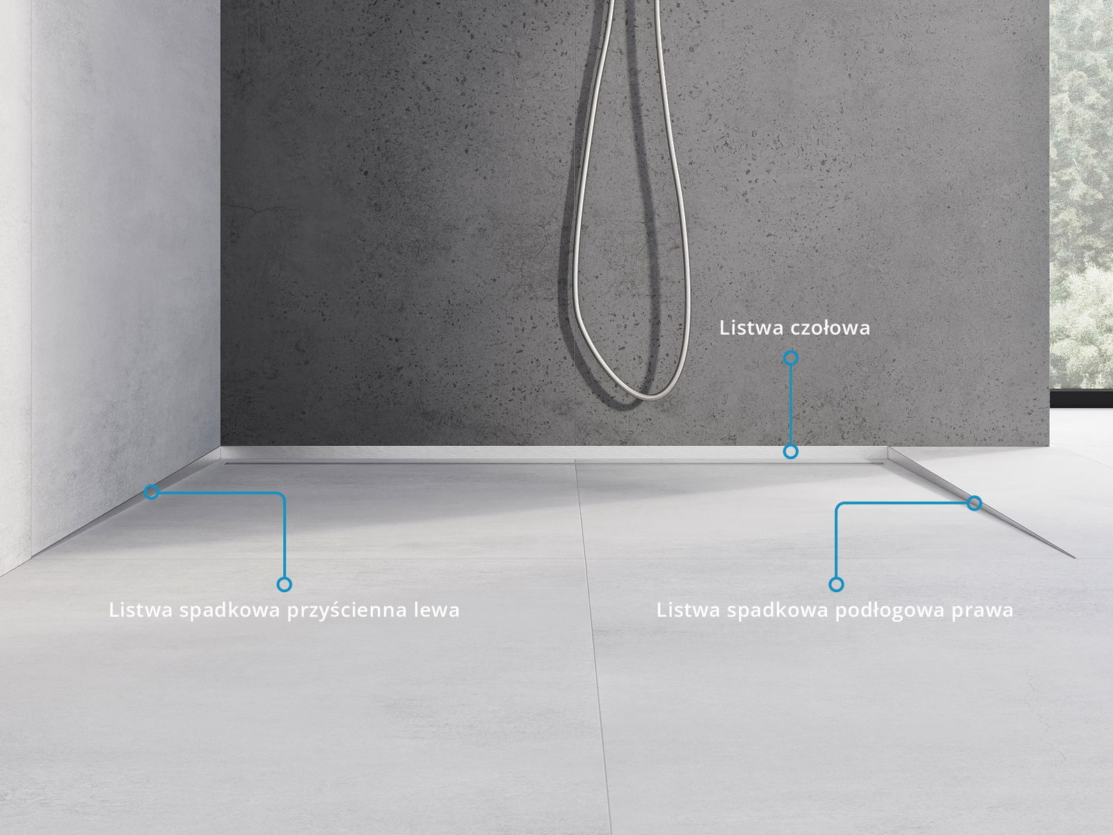 A borda lateral da soleira forçará uma inclinação unilateral para o ralo linear sem a necessidade de fazer o chamado "envelope"