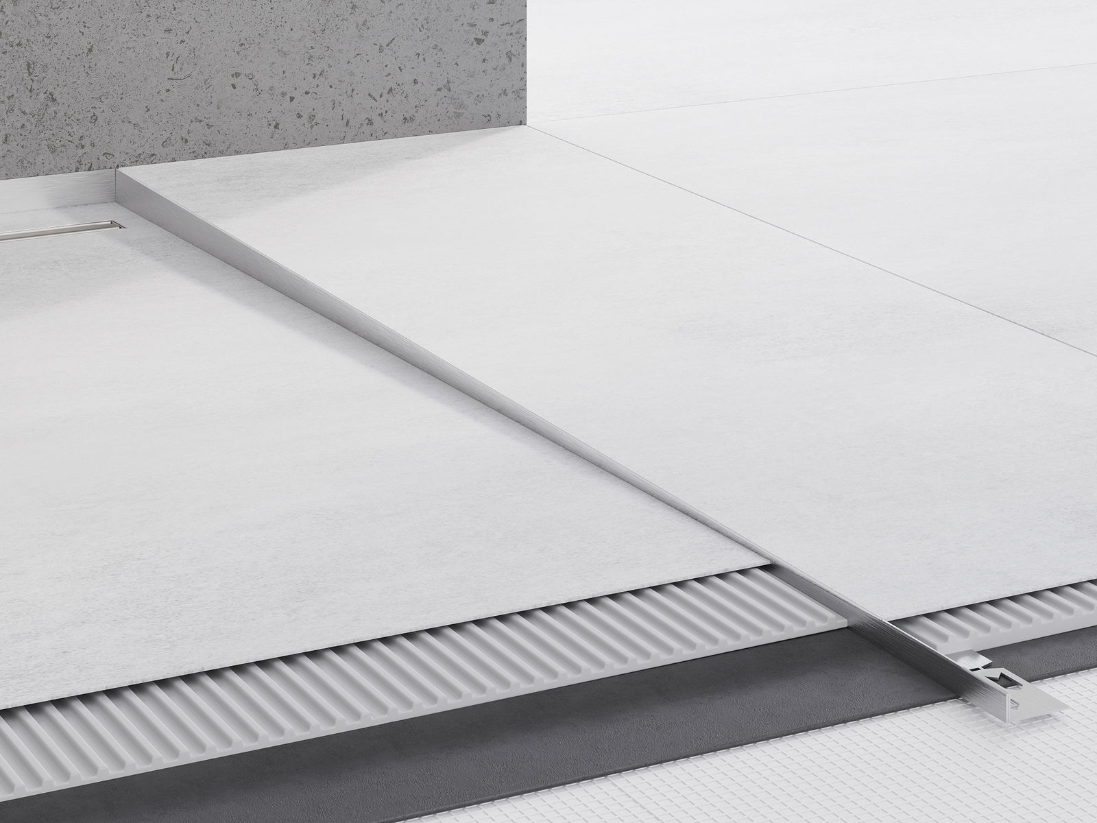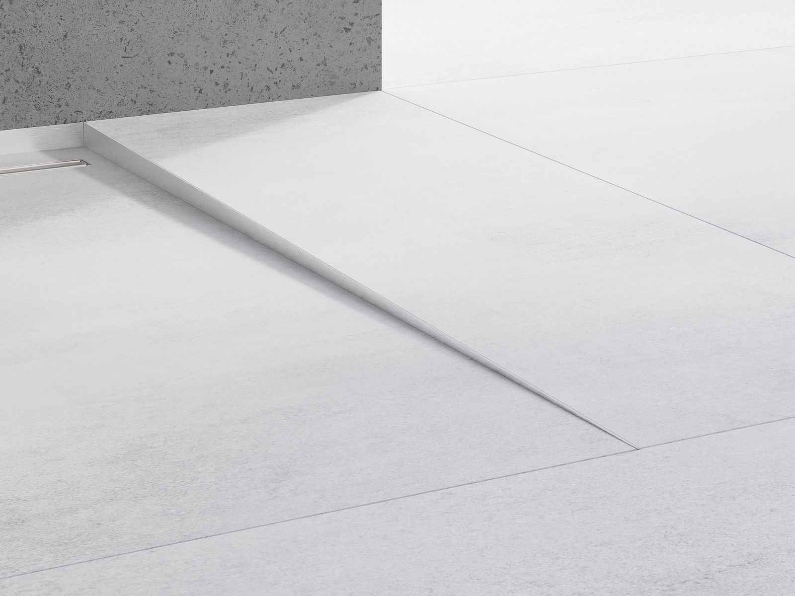 O perfil inclinado possui um ângulo de inclinação precisamente ajustado, que direciona efetivamente a água em direção ao ralo, evitando o seu acúmulo na superfície do piso. Graças a isso, a água é eficazmente drenada, o que minimiza o risco de formação de poças e garante uma superfície seca e segura.