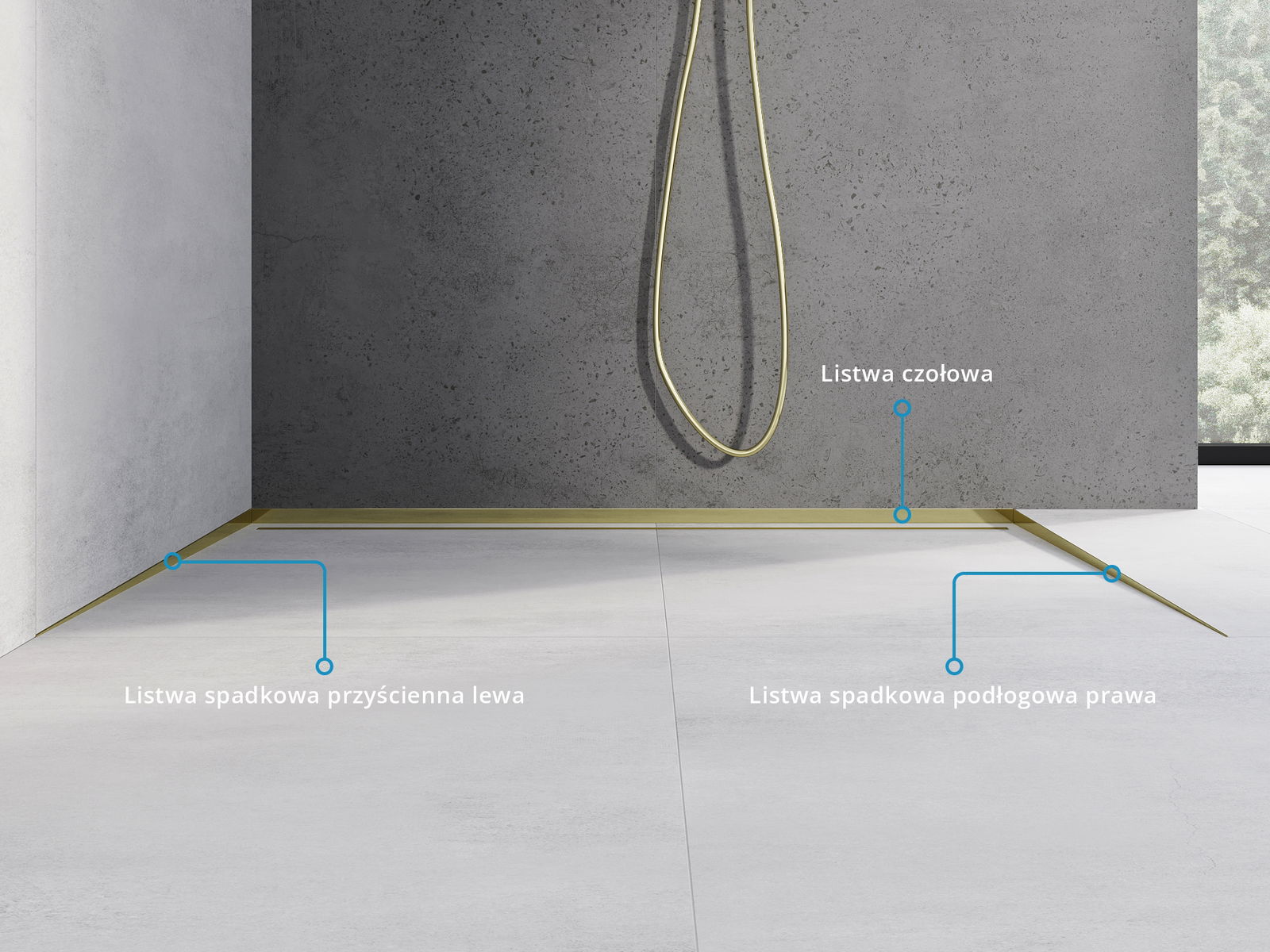 A borda lateral da guarnição impõe uma inclinação unilateral para o escoamento linear, sem necessidade de realizar a chamada cobertura