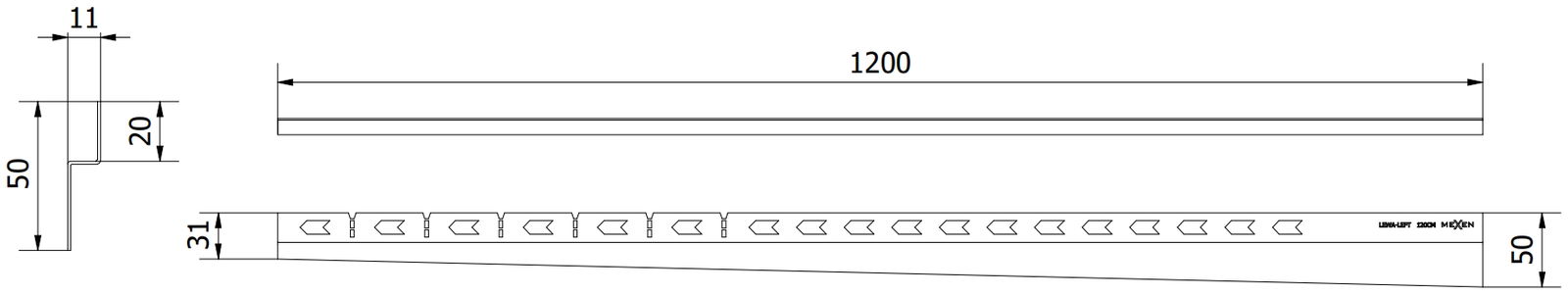 Possibilidade de cortar a calha manualmente para o comprimento necessário