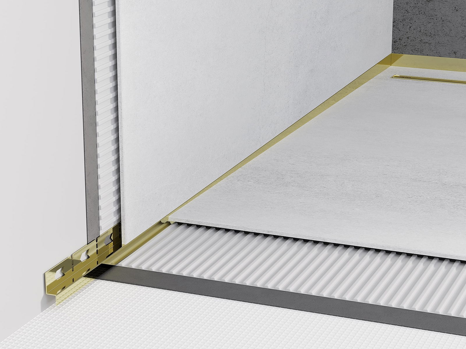 O perfil inclinado possui um ângulo de inclinação precisamente ajustado, que direciona efetivamente a água em direção ao ralo, evitando o seu acúmulo na superfície do piso. Graças a isso, a água é eficazmente drenada, o que minimiza o risco de formação de poças e garante uma superfície seca e segura.