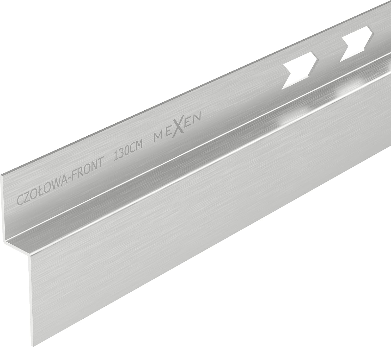A cantoneira frontal completa a utilização de cantoneiras inclinadas, criando uma unidade coesa no espaço do chuveiro