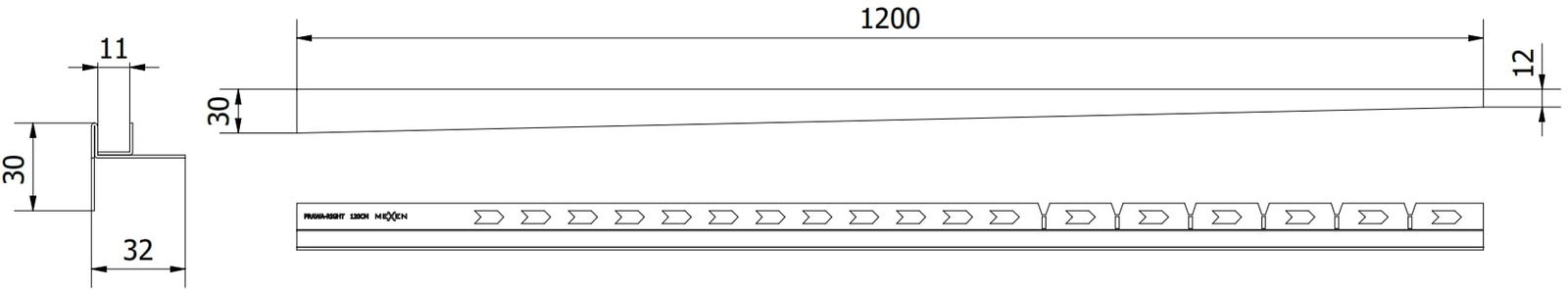 A borda lateral da guia impõe um declive unilateral para o escoamento linear sem a necessidade de fazer o chamado envelope