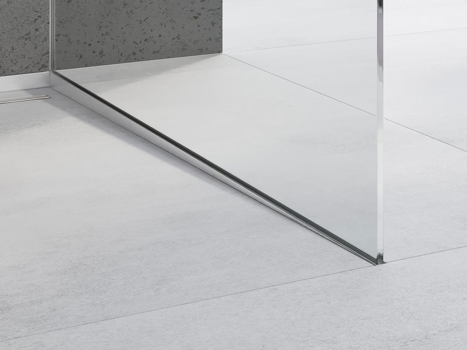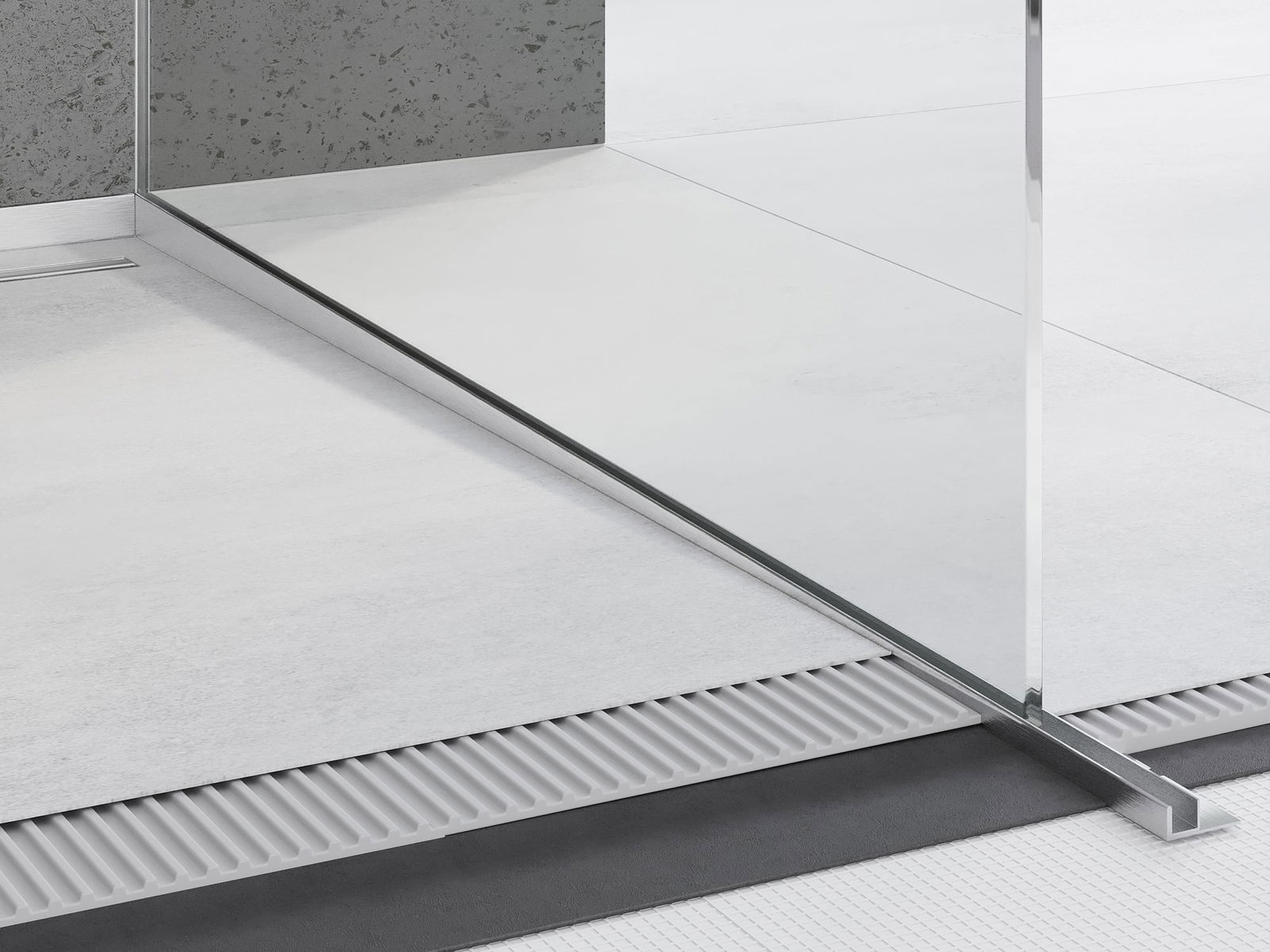 O perfil inclinado possui um ângulo de inclinação precisamente ajustado, que direciona efetivamente a água em direção ao ralo, evitando o seu acúmulo na superfície do piso. Graças a isso, a água é eficazmente drenada, o que minimiza o risco de formação de poças e garante uma superfície seca e segura.