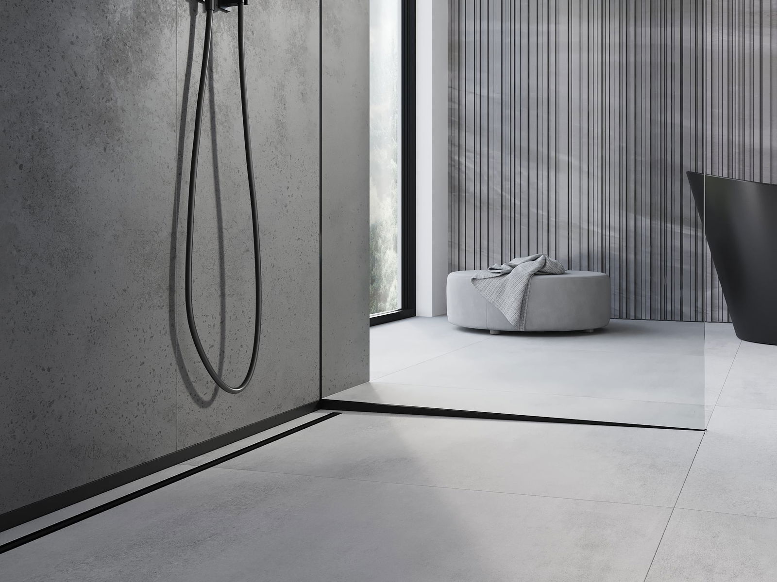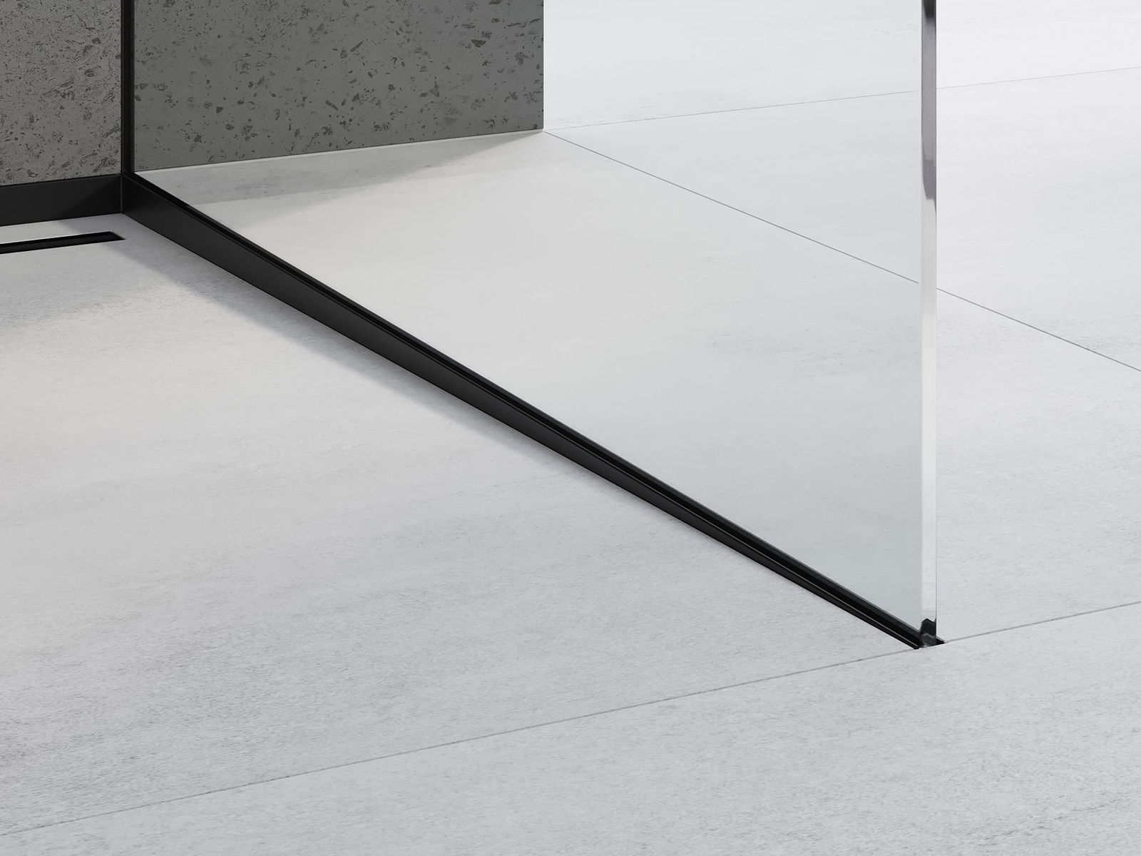 A borda lateral da barra impõe uma inclinação unilateral para o ralo linear sem a necessidade de fazer o chamado "envelope"
