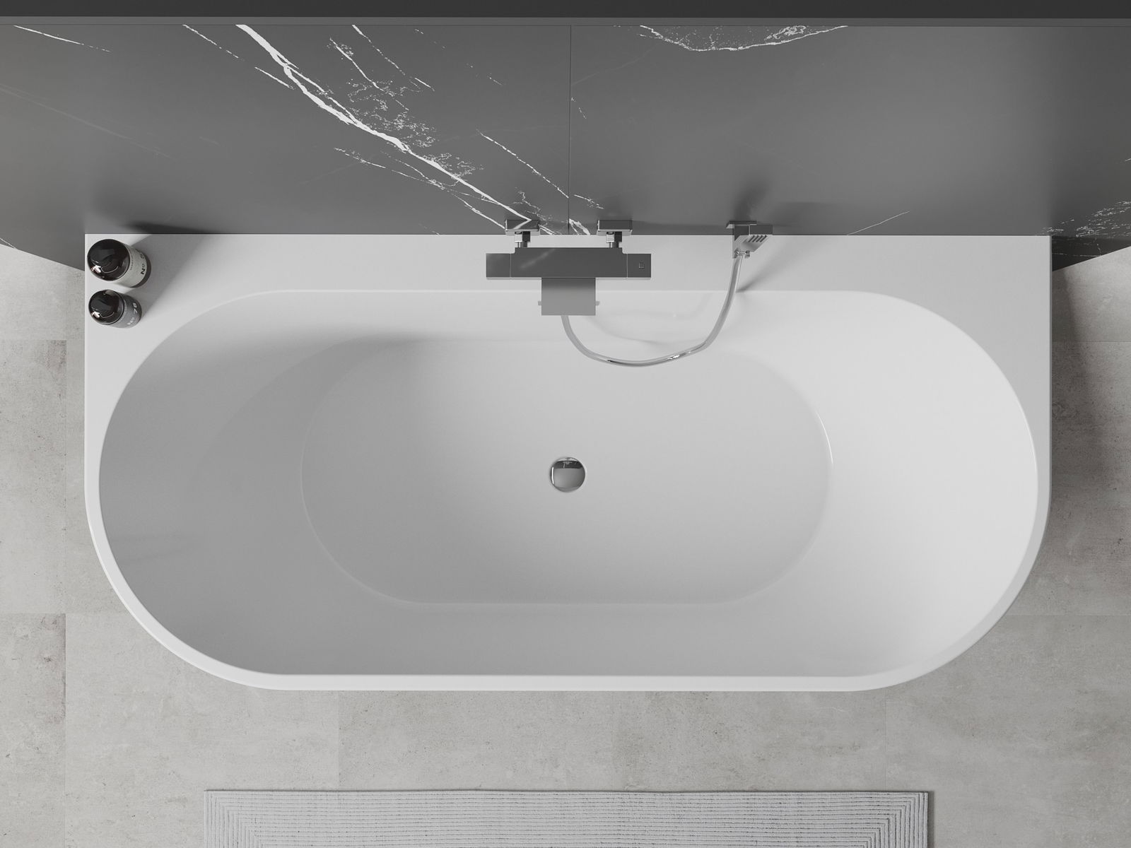 A banheira tem de um lado uma borda larga, que cria uma prateleira prática. Permite manter o sabão, cosméticos ou outros acessórios de banho à mão, proporcionando ainda mais conforto.