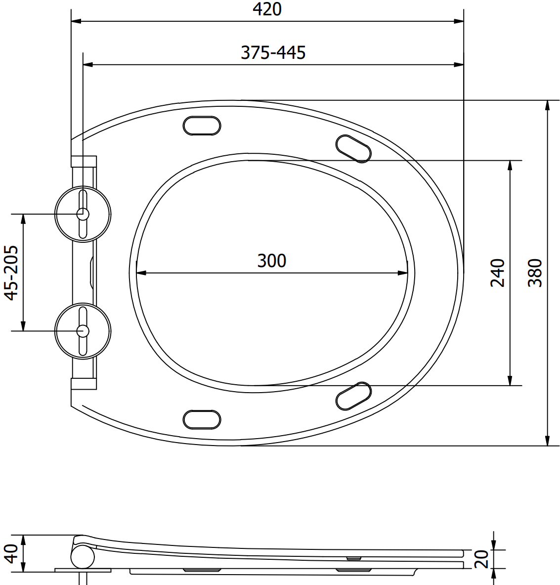 O conjunto inclui dobradiças de metal sólidas, que garantem uma fixação estável do assento à sanita. É uma solução prática que permite ajustar facilmente o assento à forma e dimensões da sanita, garantindo conforto de utilização.