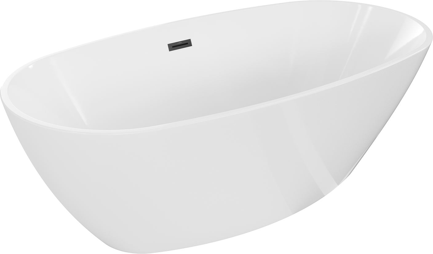 Mexen Eris banheira independente 180 x 95 cm, branca, transbordamento preto - 53441809500-70