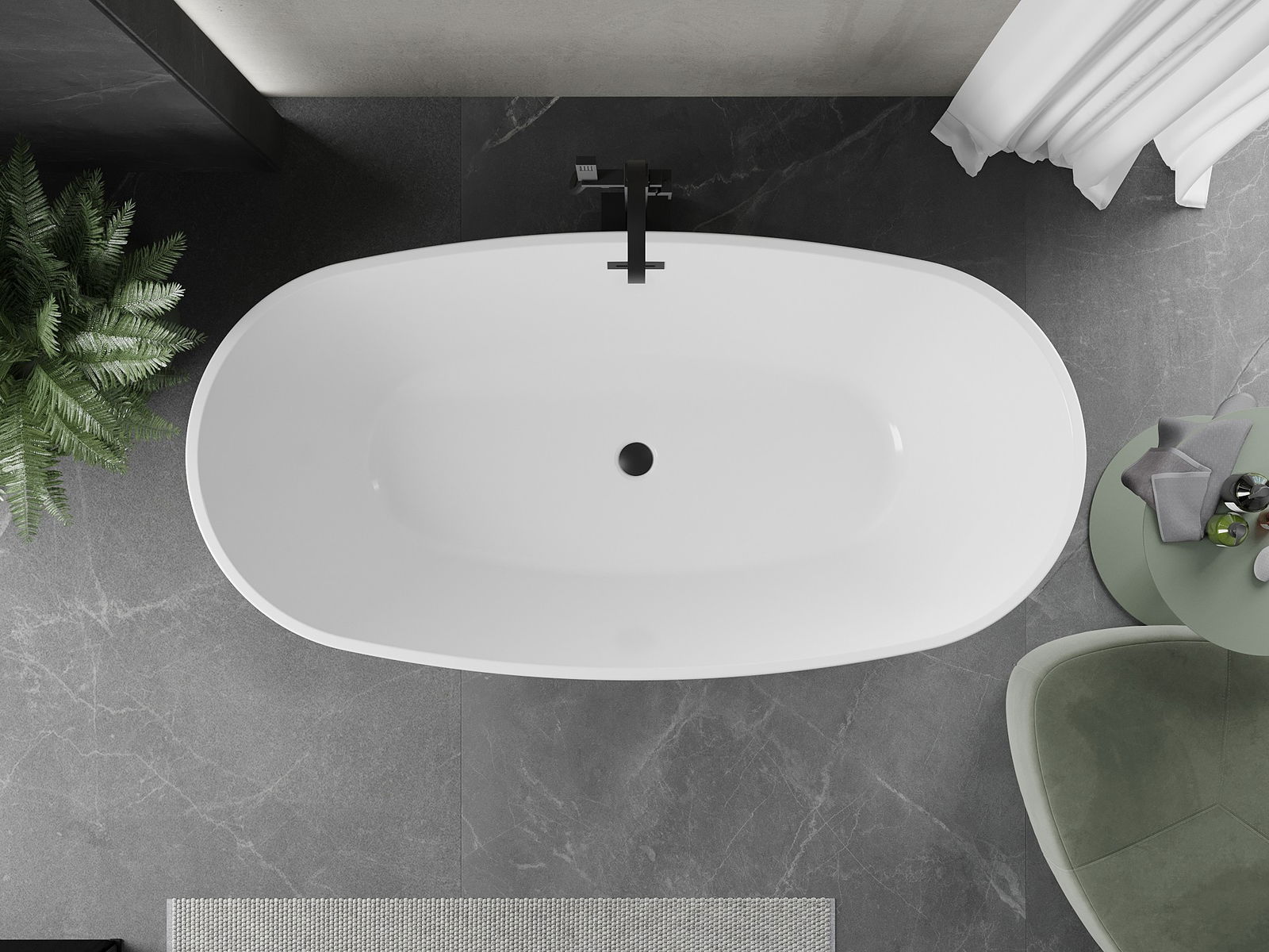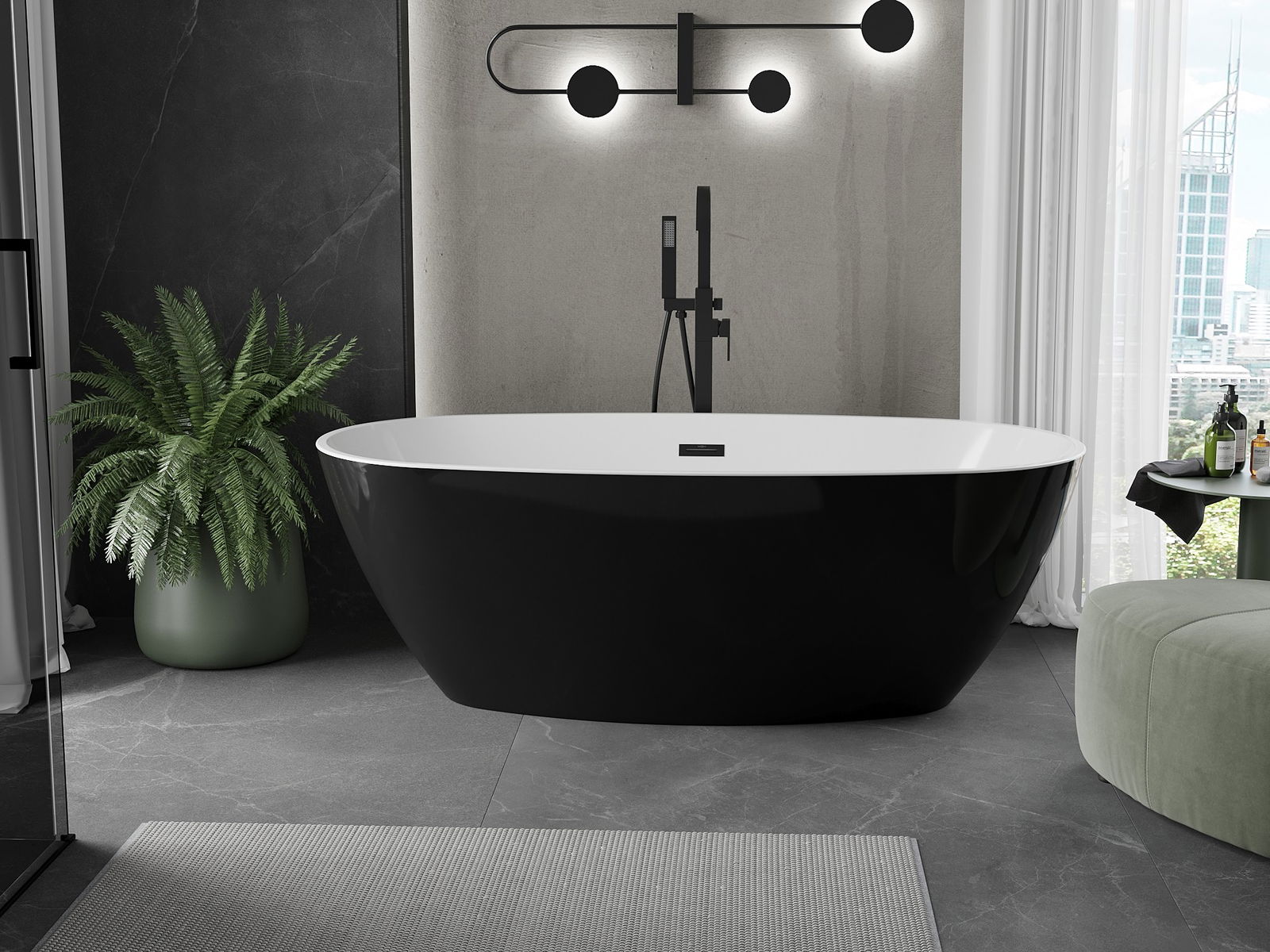 Banheira independente 180 x 95 cm em elegante combinação de acrílico branco e preto é um elemento estiloso para qualquer casa de banho. Sua forma oval e superfície brilhante destacam o caráter moderno. Possui abertura de transbordamento e sifão incluídos, proporcionando conforto no uso diário. Resistente a opacidade e radiação UV, encantará durante muitos anos. Além disso, a montagem é simples graças à construção independente.