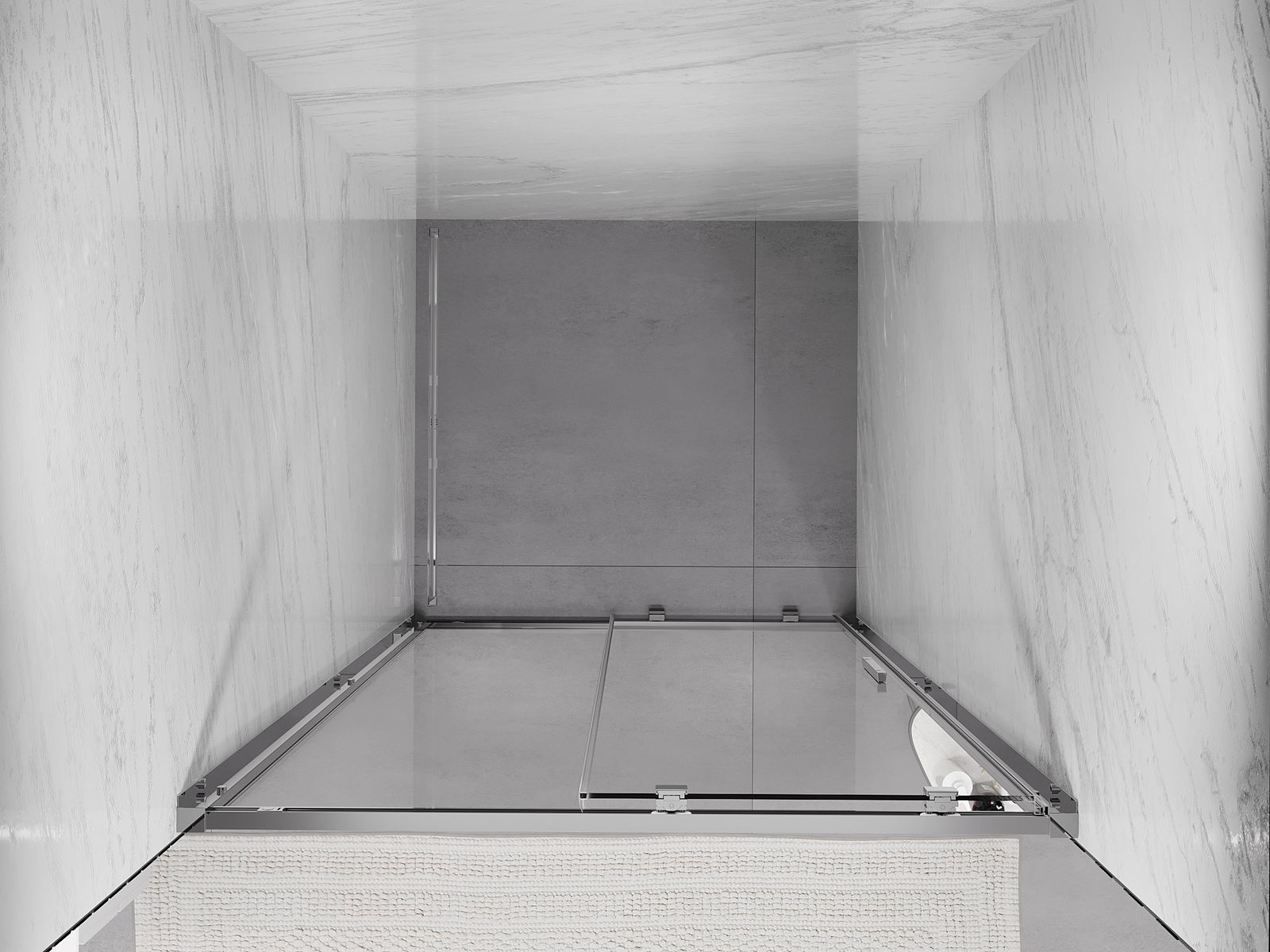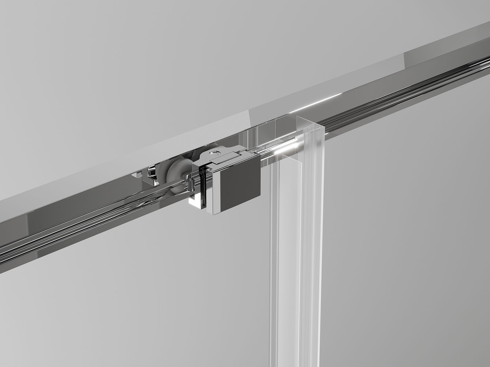 As portas de correr movem-se em guias especiais e não requerem espaço adicional para serem abertas, por isso são ideais para casas de banho menores. Graças aos rolos duplos com corpo de metal, o seu movimento é suave.