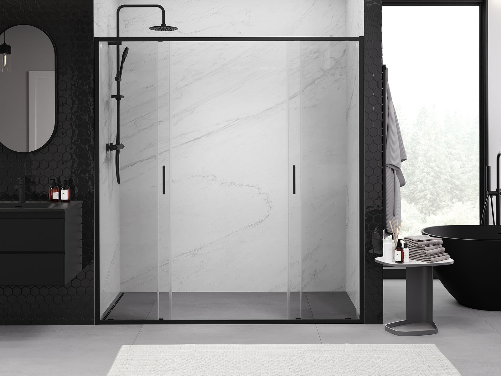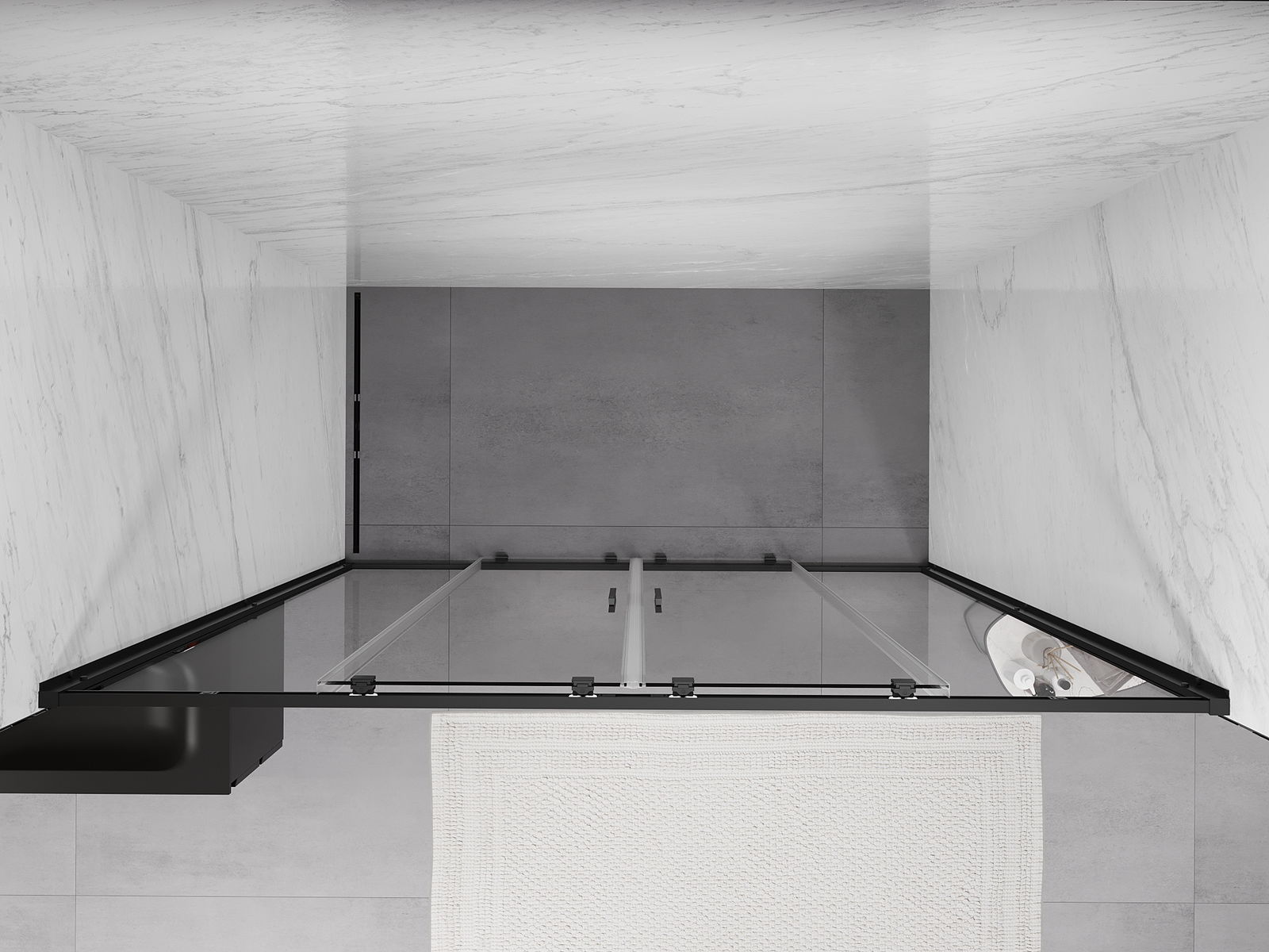 A pega prática e confortável foi feita de metal durável e resistente. A forma moderna combinada com o acabamento ajustado à cor dos perfis confere a todo o conjunto uma aparência moderna e estilosa, realçando a estética de qualquer casa de banho.
