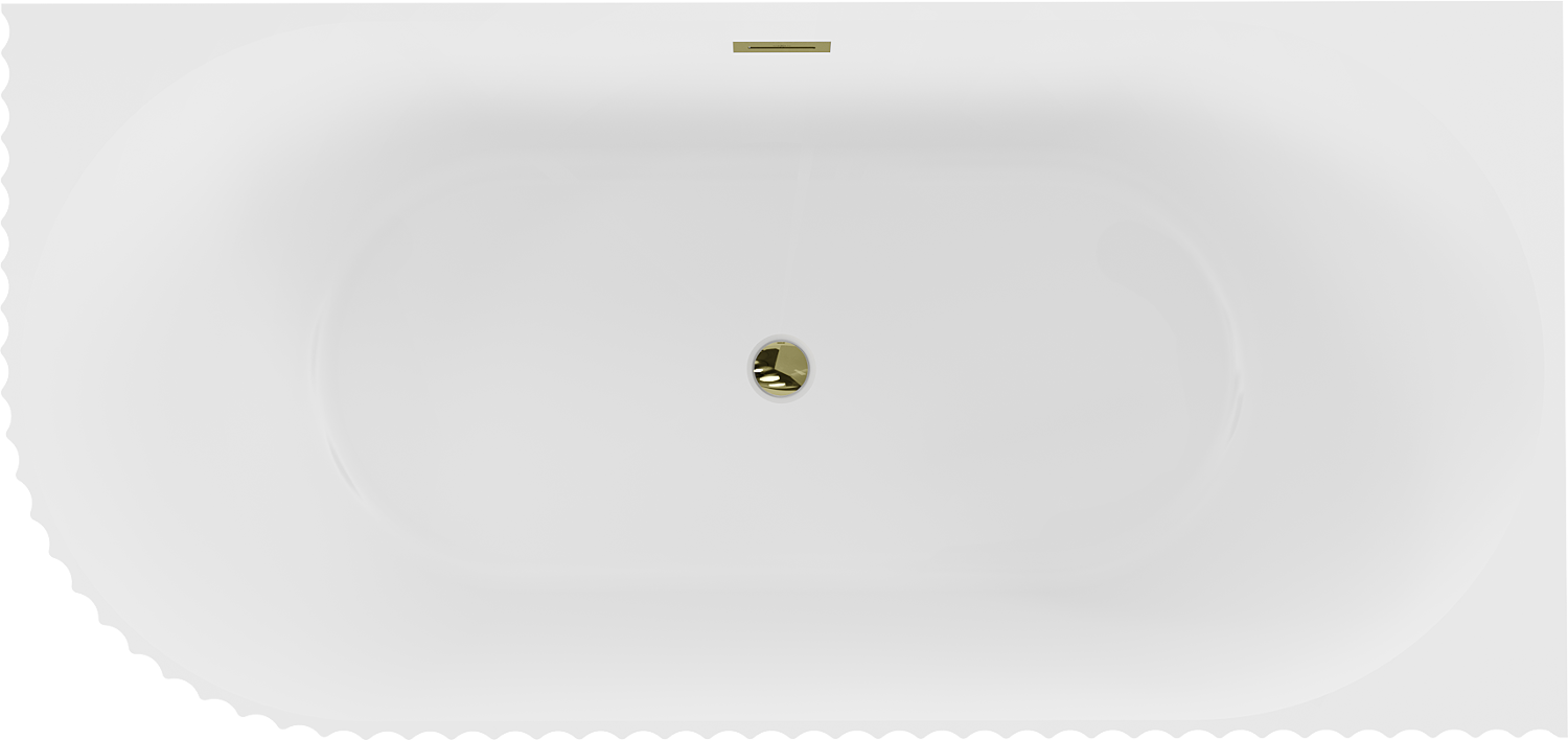 Mexen Gia banheira independente de canto com textura direita 170 x 80 cm, branco mate, transbordamento dourado - 52701708001P-50