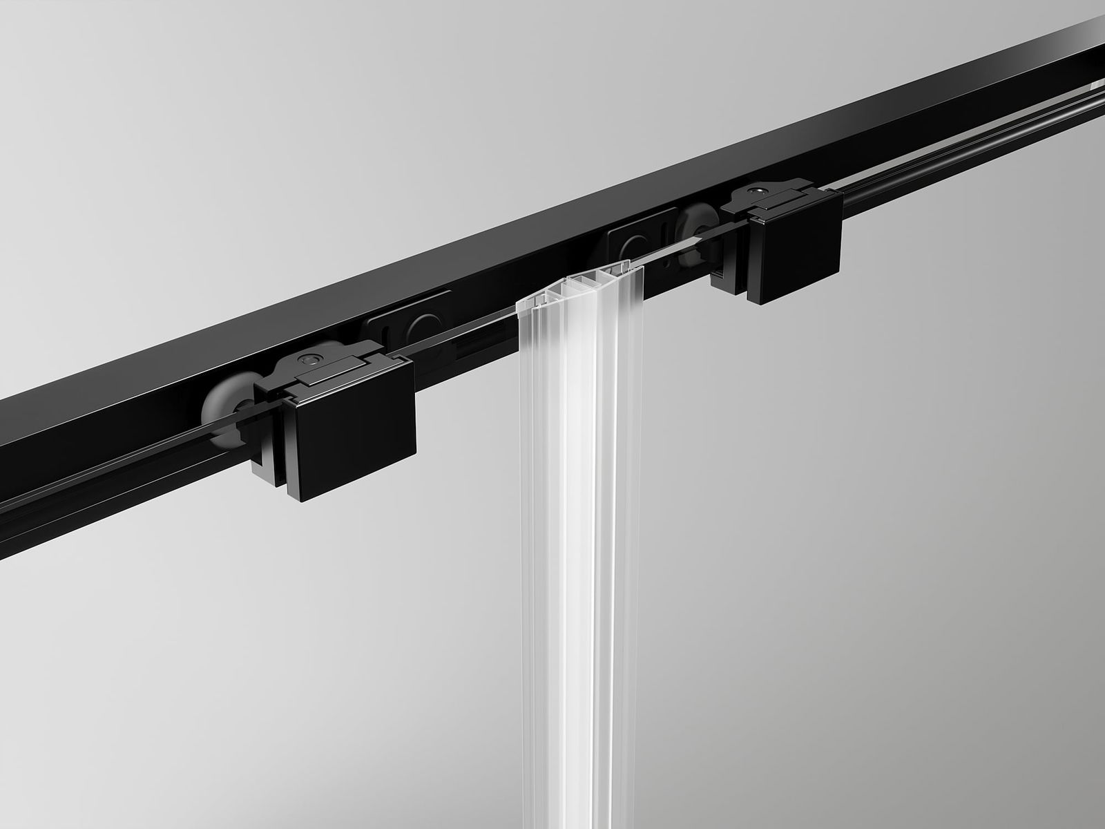 As portas de correr movem-se em guias especiais e não requerem espaço adicional para serem abertas, por isso são ideais para casas de banho menores. Graças aos rolos duplos com corpo de metal, o seu movimento é suave.