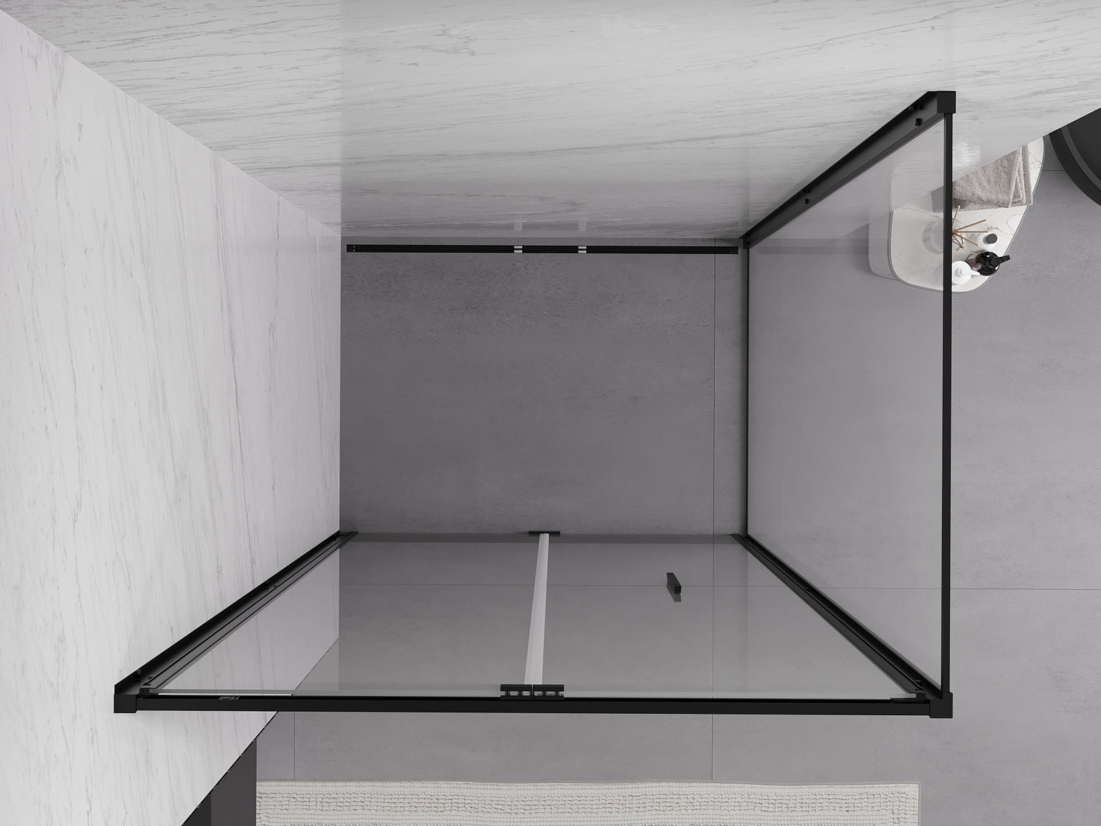 A pega prática e confortável foi feita de metal durável e resistente. A forma moderna combinada com o acabamento ajustado à cor dos perfis confere a todo o conjunto uma aparência moderna e estilosa, realçando a estética de qualquer casa de banho.