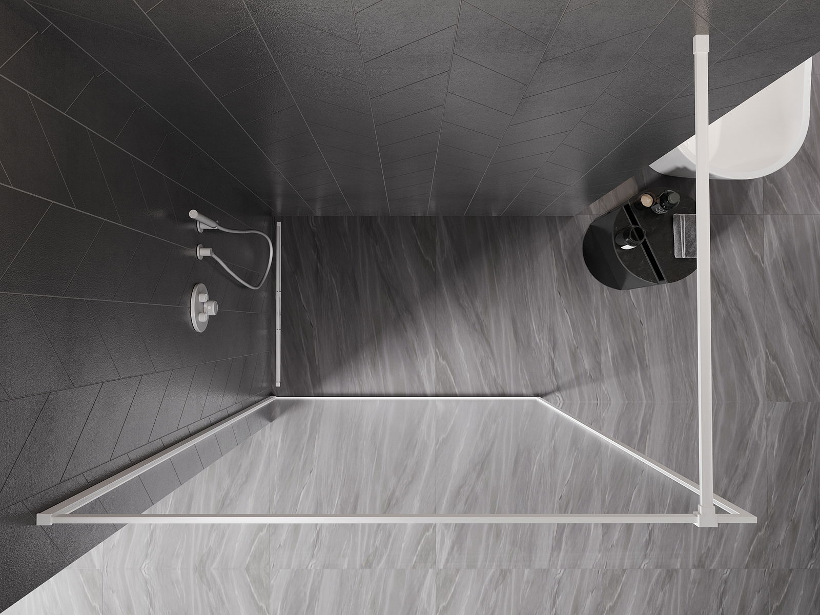 Mexen Kioto-F parede de chuveiro Walk-in com moldura 155 x 202 cm, transparente 8 mm, branca - 800-155-104-20-00