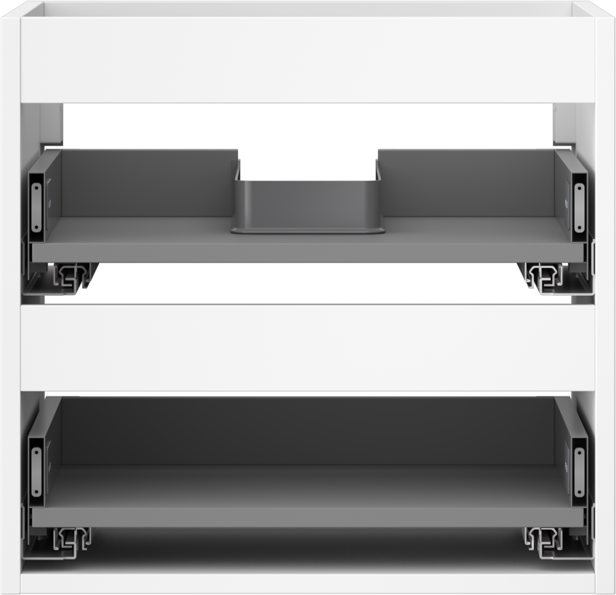 O recorte na gaveta é projetado de forma a acomodar o sifão, que é essencial em instalações de lavatórios. Graças a isso, o móvel pode ser montado de forma totalmente funcional, sem a necessidade de abdicar do espaço da gaveta em prol da instalação.