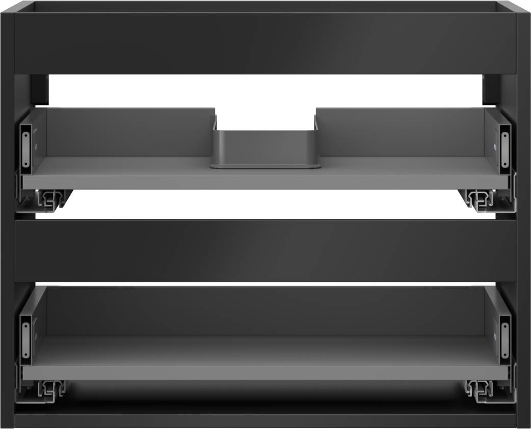 O recorte na gaveta é projetado de forma a acomodar o sifão, que é essencial em instalações de lavatórios. Graças a isso, o móvel pode ser montado de forma totalmente funcional, sem a necessidade de abdicar do espaço da gaveta em prol da instalação.