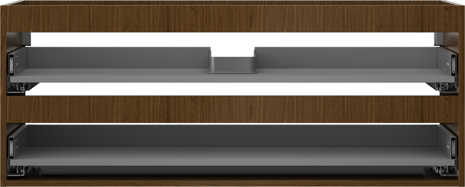 O recorte na gaveta é projetado de forma a acomodar o sifão, que é essencial em instalações de lavatórios. Graças a isso, o móvel pode ser montado de forma totalmente funcional, sem a necessidade de abdicar do espaço da gaveta em prol da instalação.
