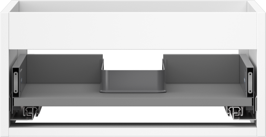O recorte na gaveta é projetado de forma a acomodar o sifão, que é essencial em instalações de lavatórios. Graças a isso, o móvel pode ser montado de forma totalmente funcional, sem a necessidade de abdicar do espaço da gaveta em prol da instalação.