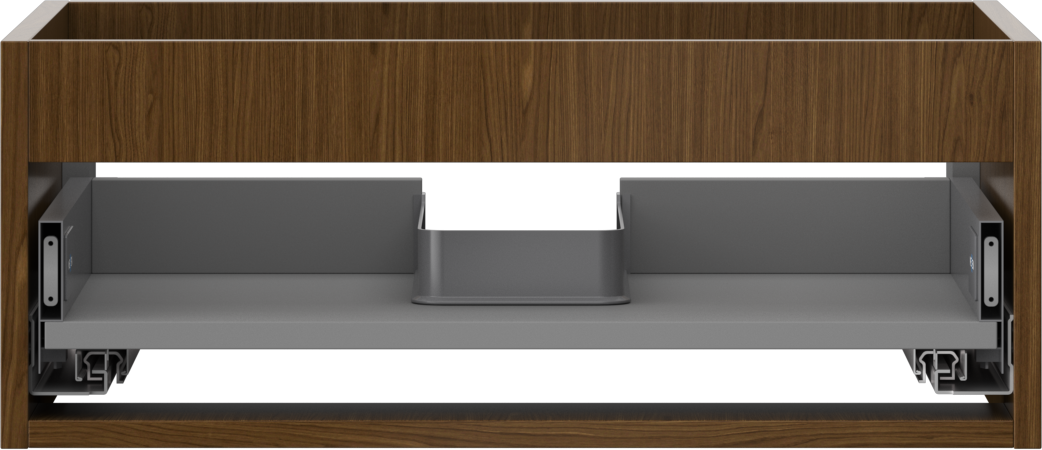 O recorte na gaveta é projetado de forma a acomodar o sifão, que é essencial em instalações de lavatórios. Graças a isso, o móvel pode ser montado de forma totalmente funcional, sem a necessidade de abdicar do espaço da gaveta em prol da instalação.