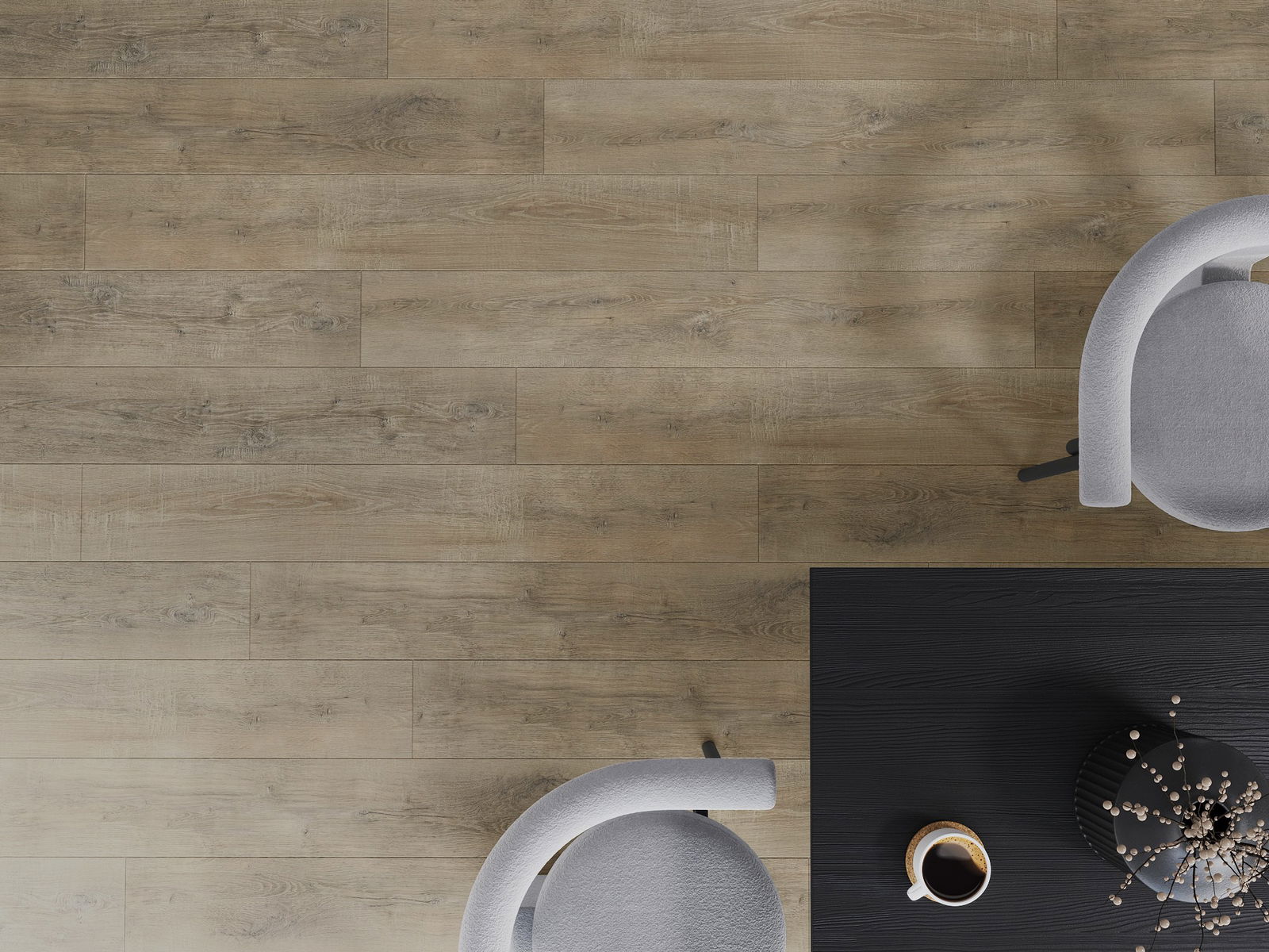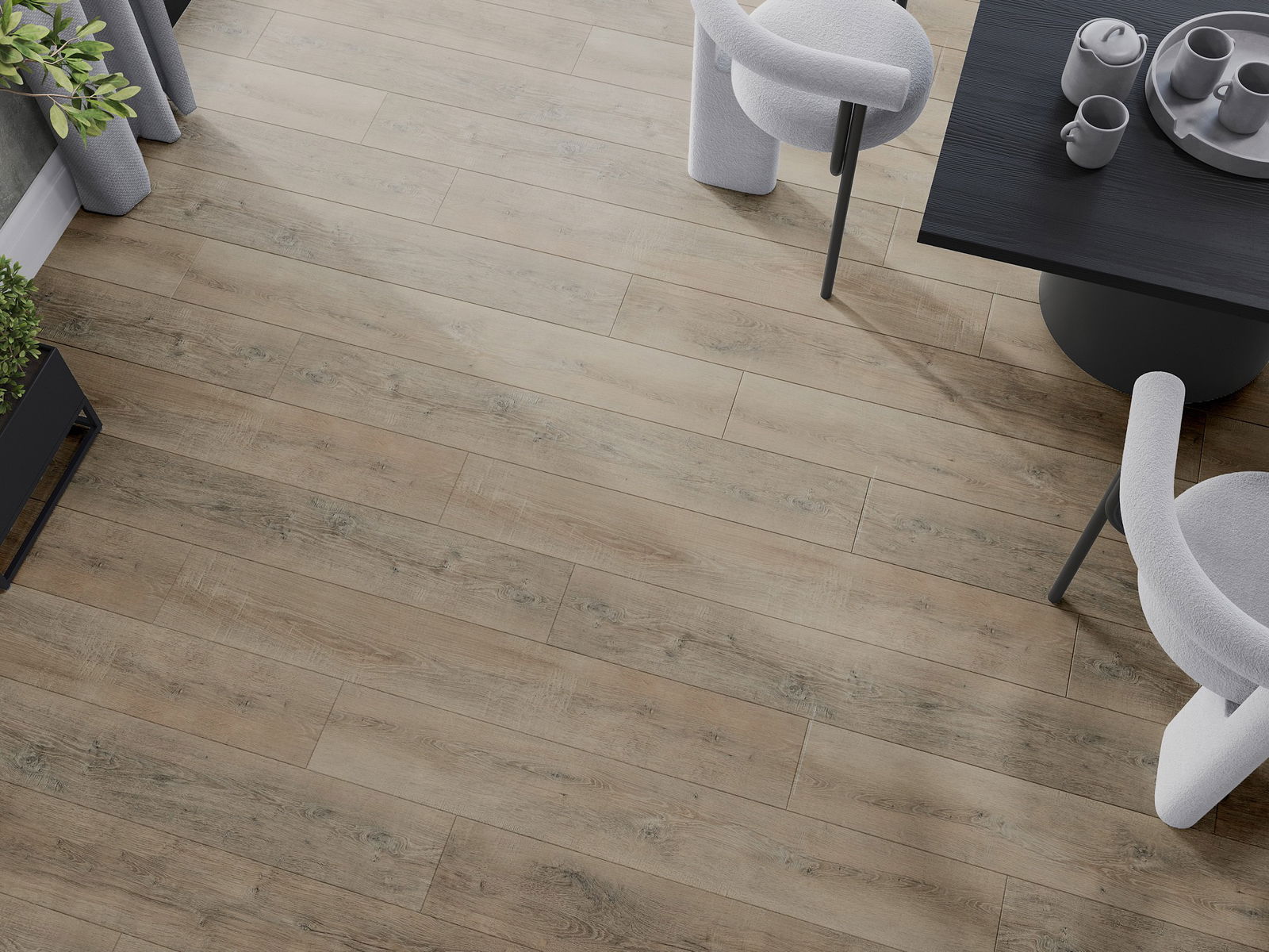 Os painéis têm uma junta de 4 lados - cada lado foi fresado de forma a criar uma junção em forma de V quando colocados. Este design faz com que o chão tenha uma estrutura mais pronunciada, conferindo-lhe profundidade e um caráter estético. Este efeito é especialmente valorizado em arranjos modernos, onde os detalhes realçam a aparência única do interior.