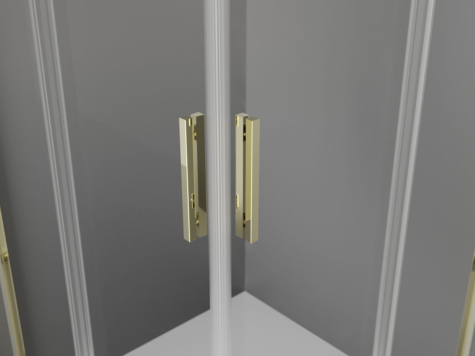 Mexen Exo cabine de duche quadrada com porta de abrir 80 x 80 cm, transparente, dourada - 8110-080-080-50-00