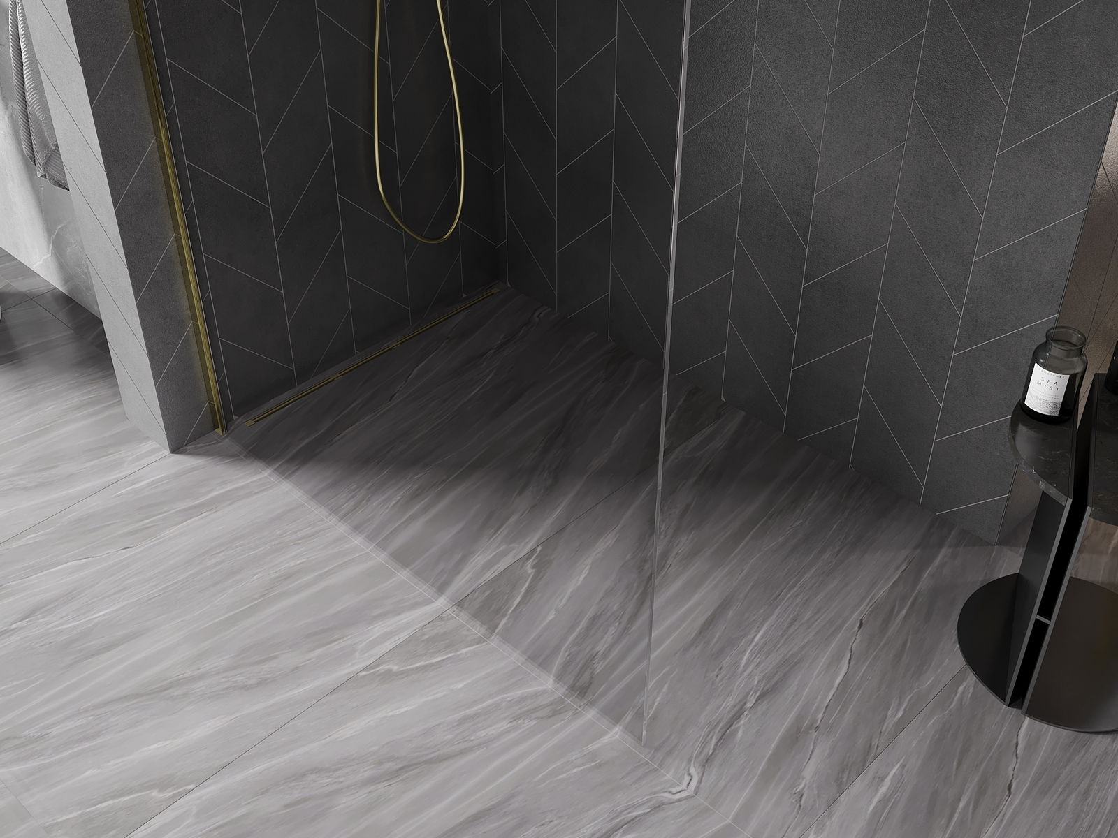 Mexen Kioto-X parede de duche Walk-in 140 x 200 cm, transparente 10 mm, dourada - 800-140-101-50-00-X