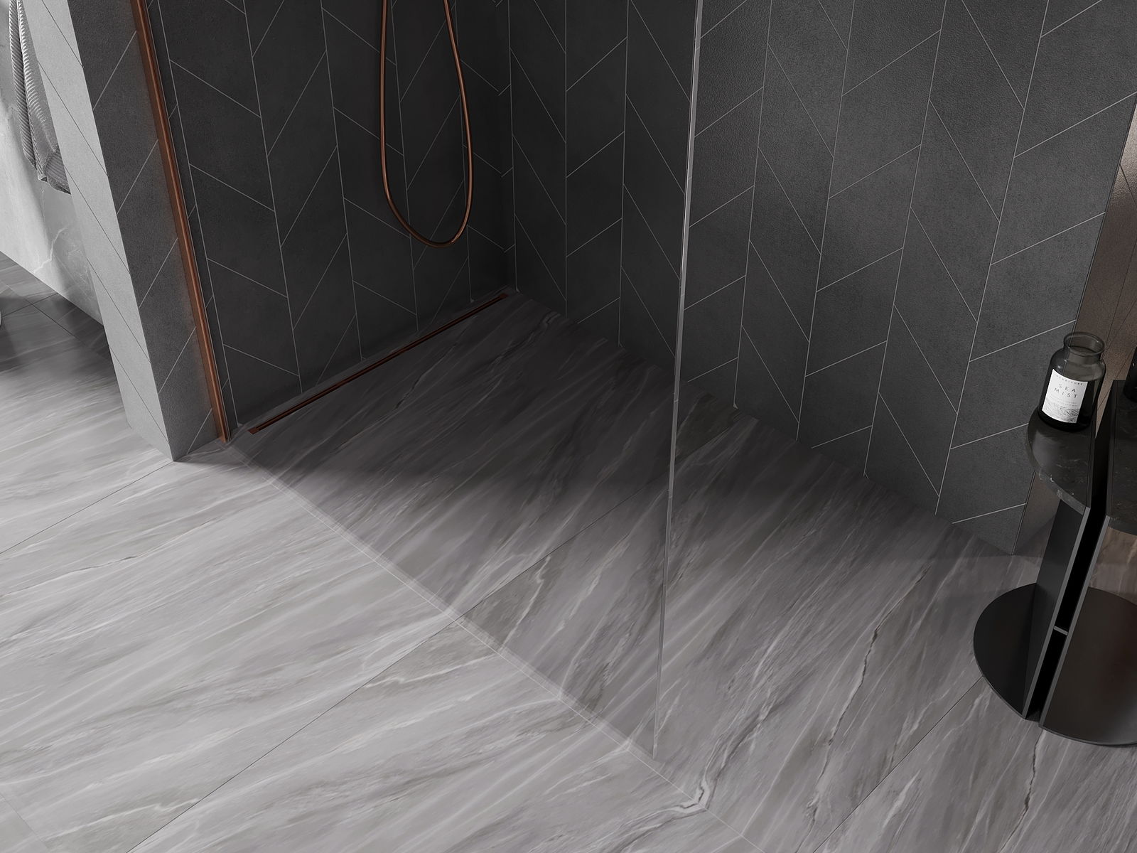 Mexen Kioto-X Parede de duche Walk-in 140 x 200 cm, transparente 10 mm, cobre escovado - 800-140-101-65-00-X