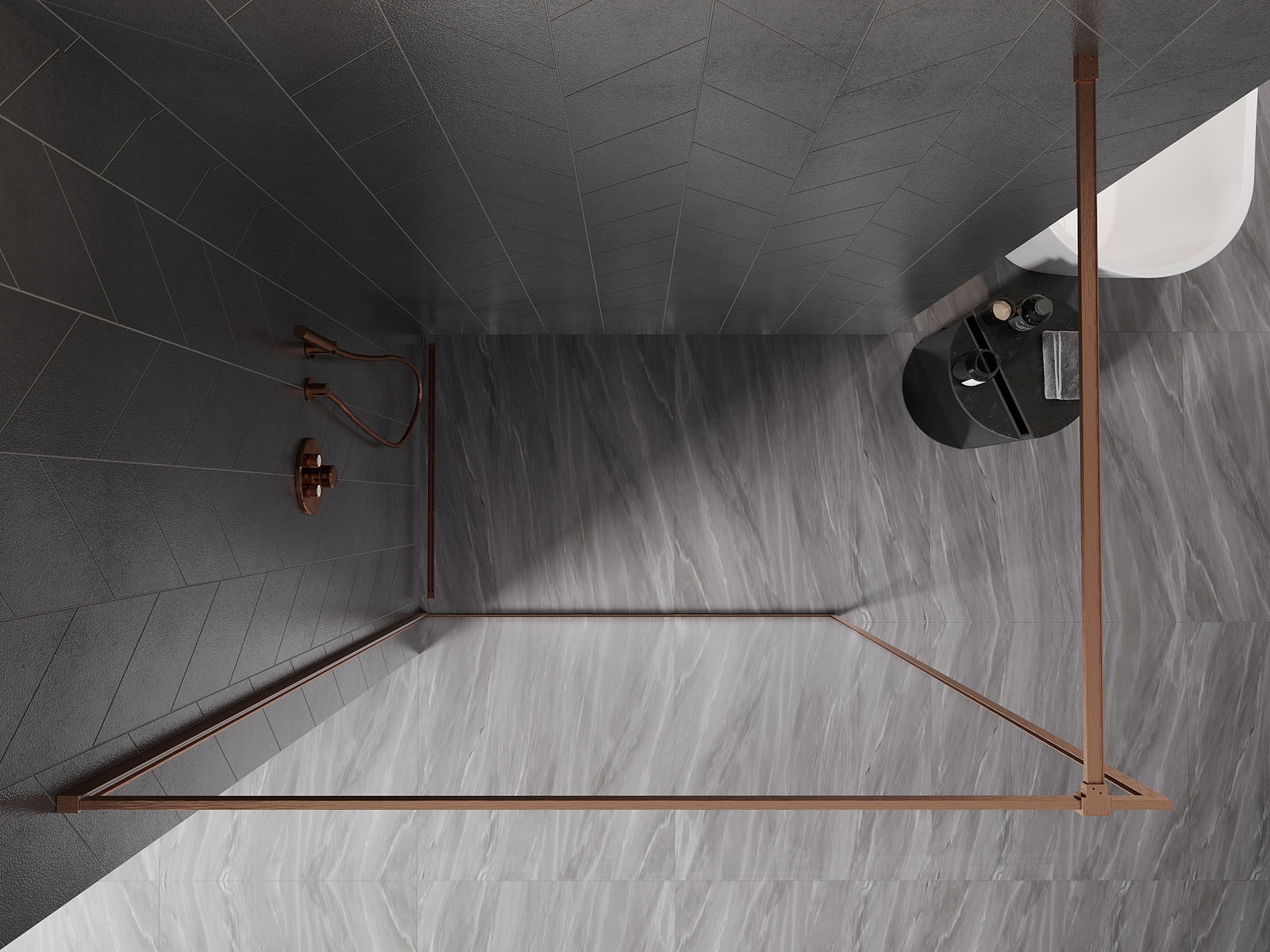 Mexen Kioto-XF parede de chuveiro Walk-in com moldura 130 x 202 cm, transparente 10 mm, cobre escovado - 800-130-104-65-00-X
