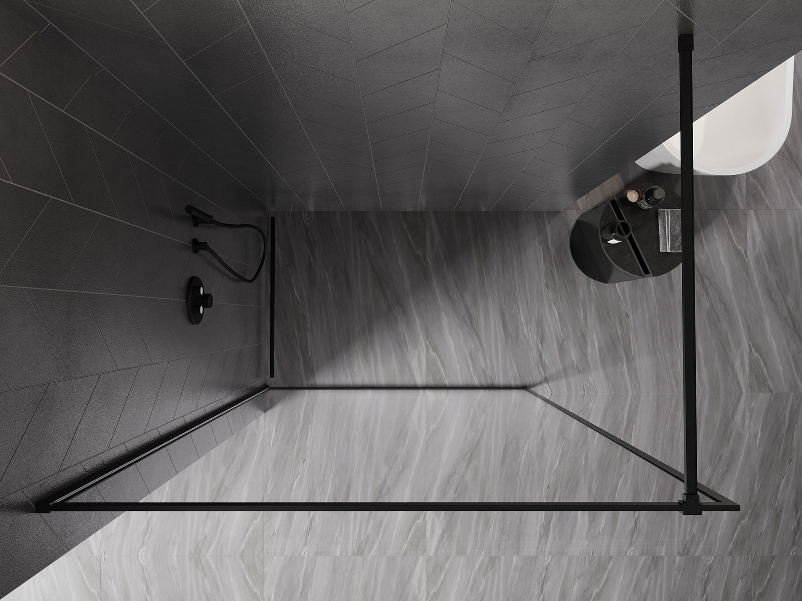 Mexen Kioto-XF parede de duche Walk-in com moldura 100 x 202 cm, transparente 10 mm, preto - 800-100-104-70-00-X