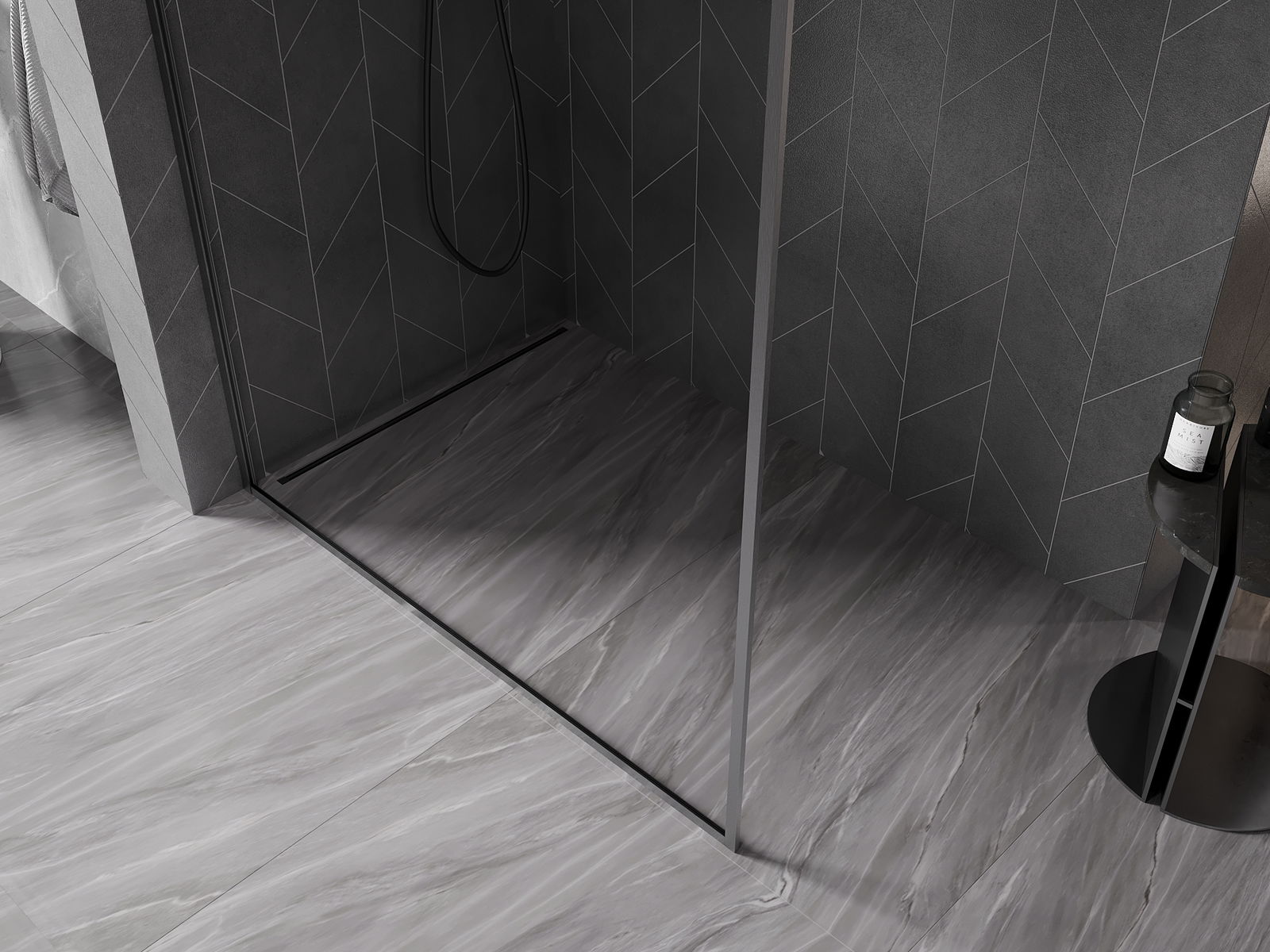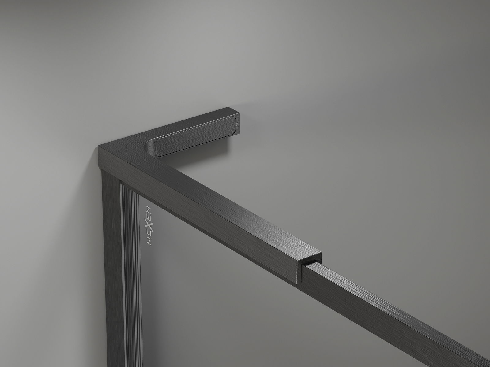 Mexen Kioto-XF L parede de duche Walk-in com moldura 50x202 cm, transparente 10 mm, cinza metálico escovado
