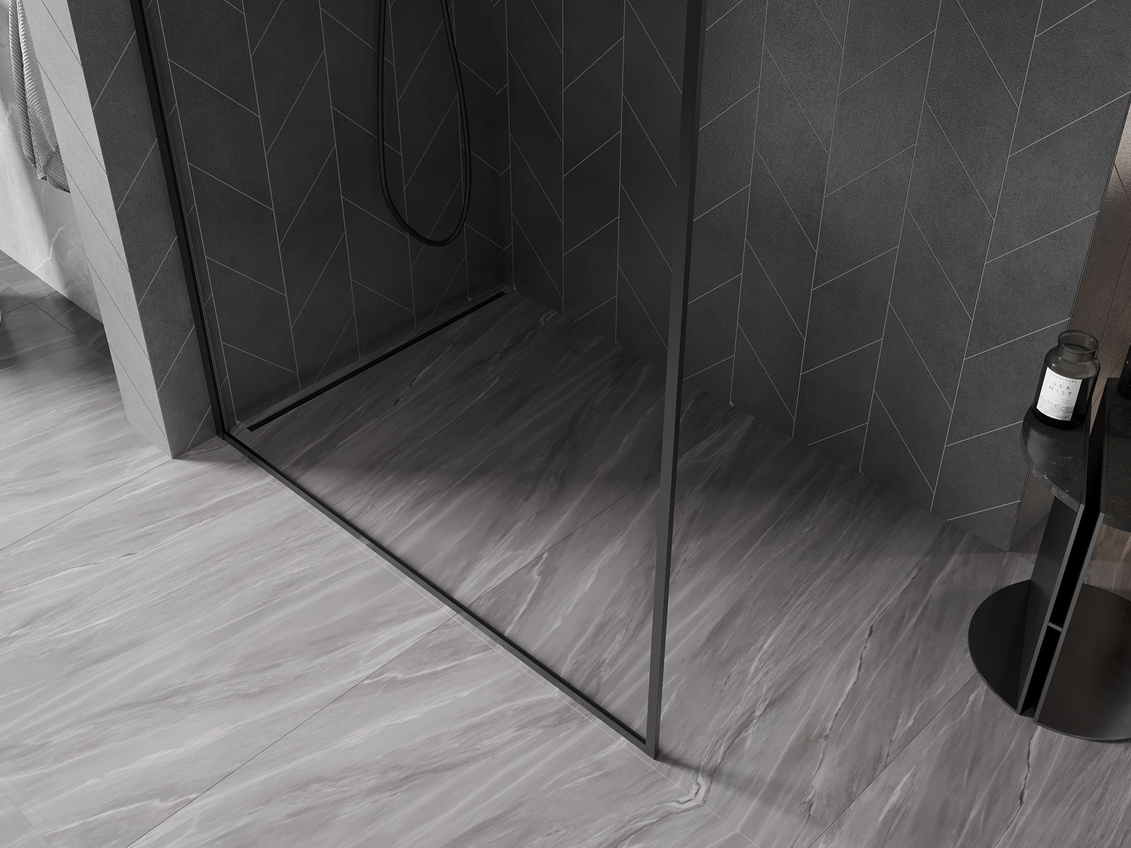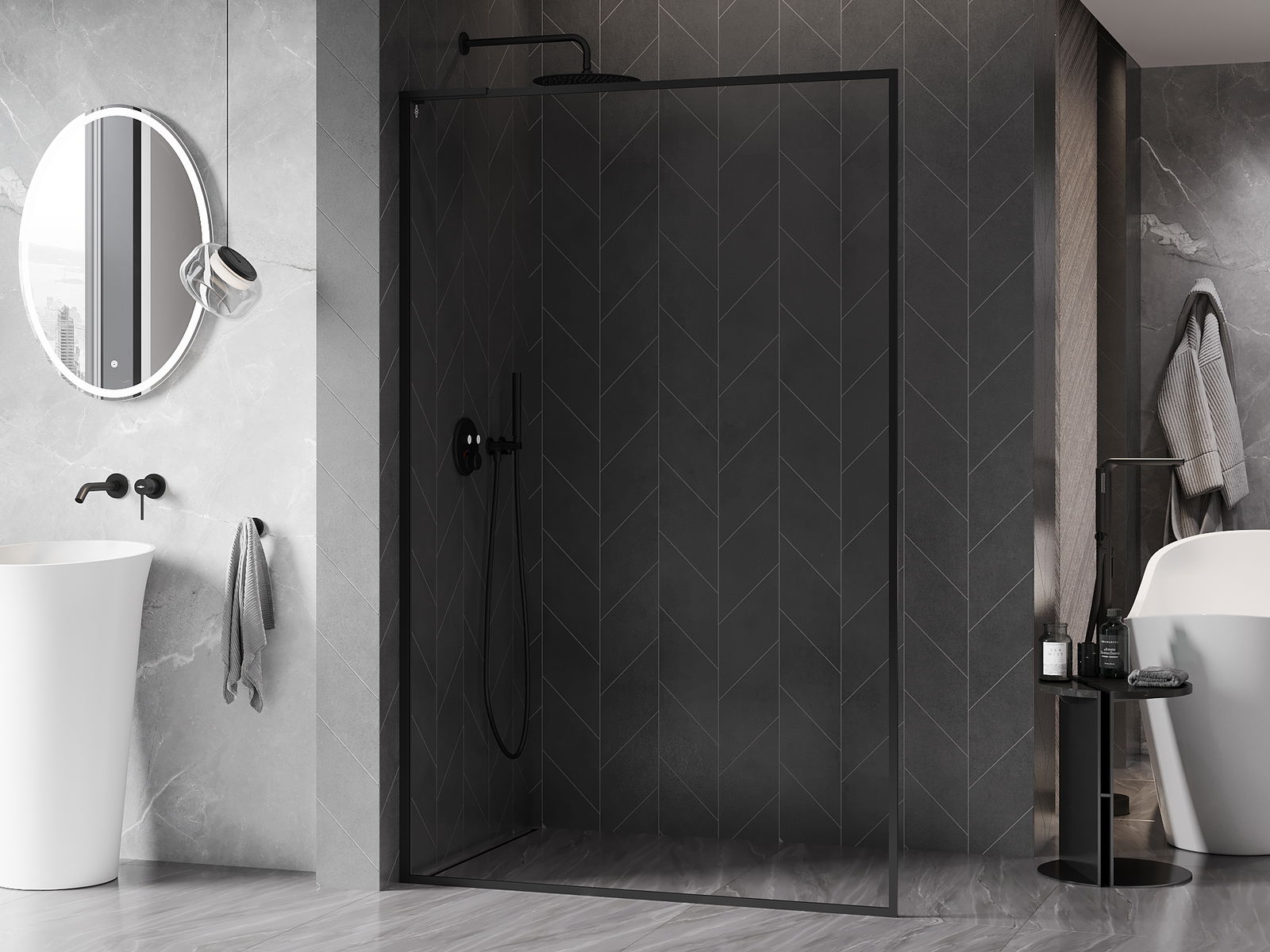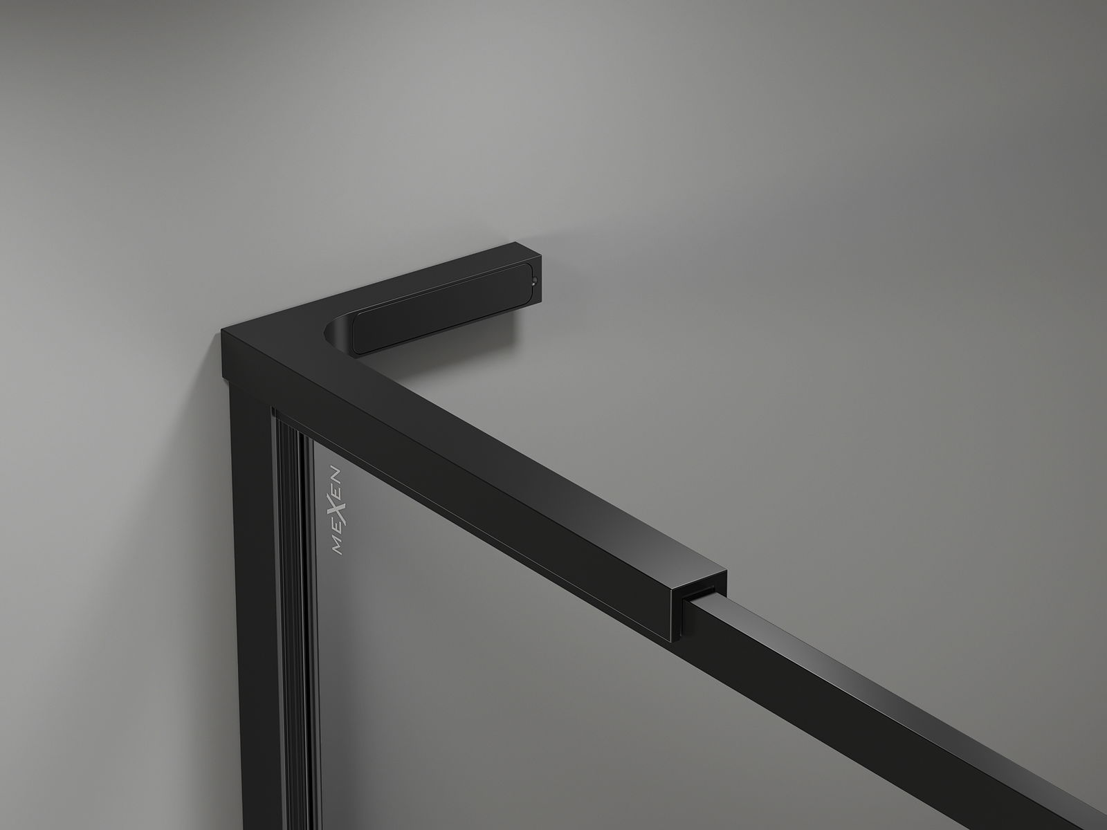 Mexen Kioto-F L Parede de duche Walk-in com moldura 100 x 202 cm, transparente 8 mm, preta - 800-100-174-70-00