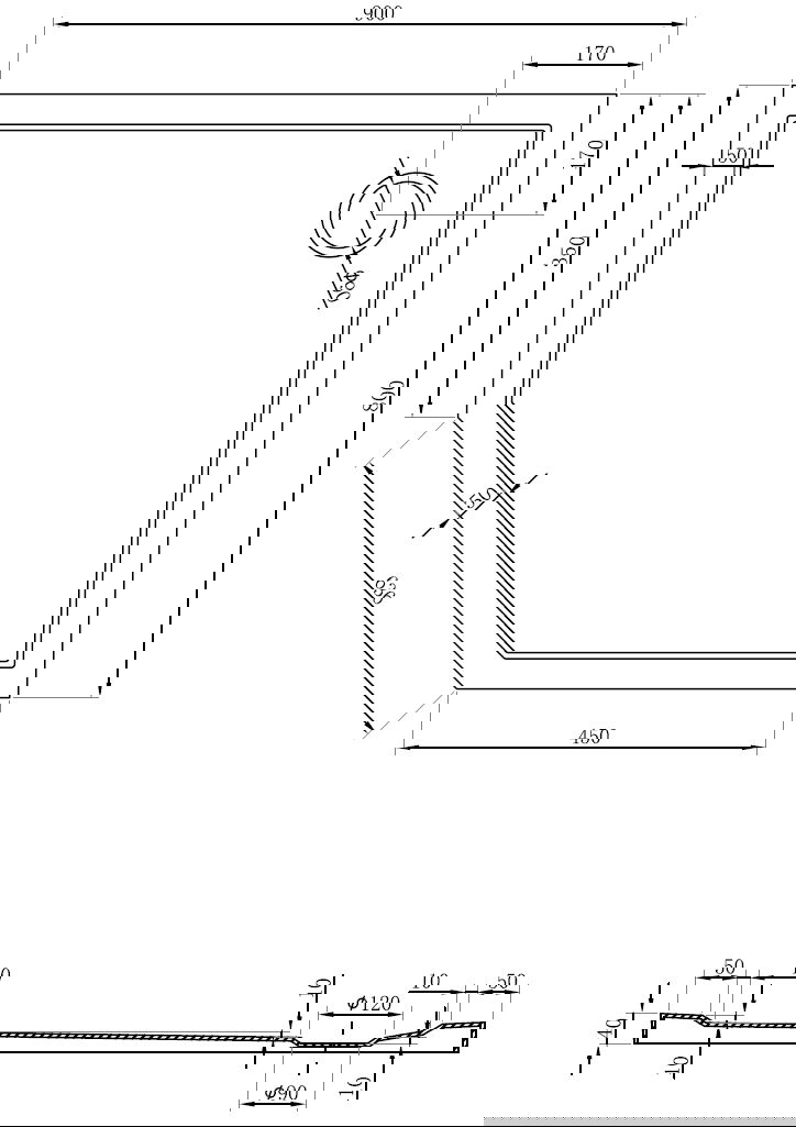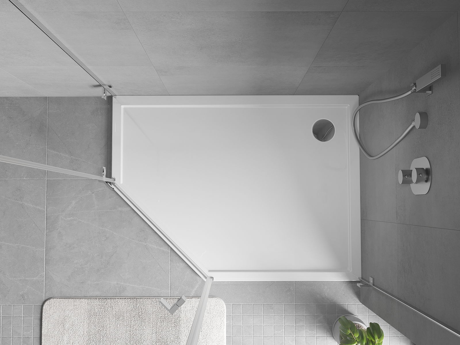 A base de duche foi concebida de forma a permitir que a água escoe livremente na direção do ralo. Assegura uma drenagem rápida e eficiente da água da superfície da base de duche, prevenindo a formação de poças e o alagamento da casa de banho.