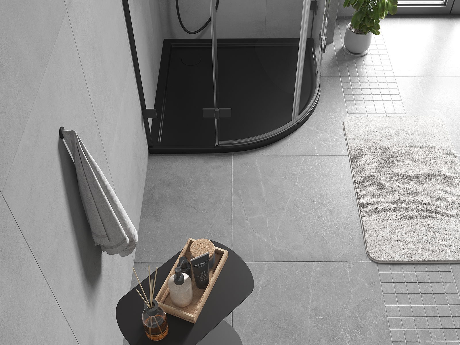 A base de duche foi concebida de forma a permitir que a água escoe livremente na direção do ralo. Assegura uma drenagem rápida e eficiente da água da superfície da base de duche, prevenindo a formação de poças e o alagamento da casa de banho.