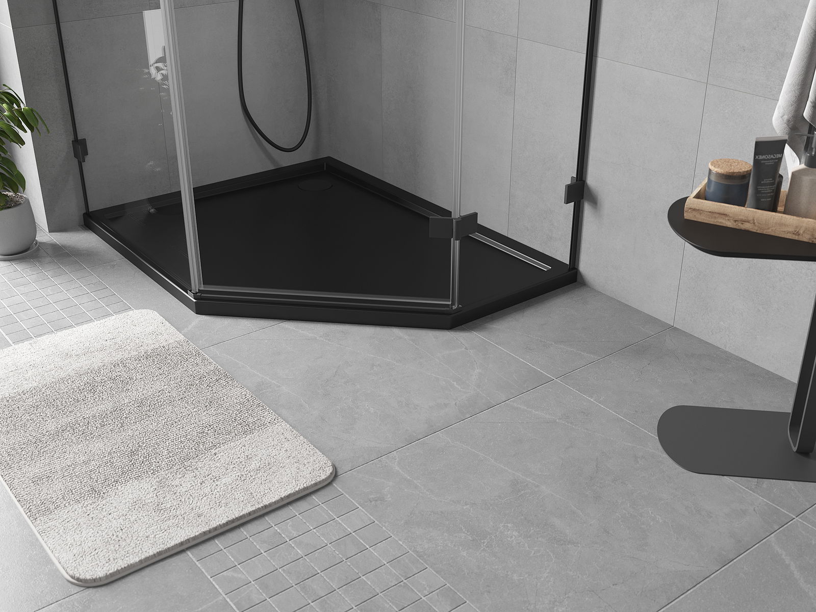 Mexen Flow base de duche pentagonal slim esquerda 90 x 80 cm, preto mate - 46P708090L