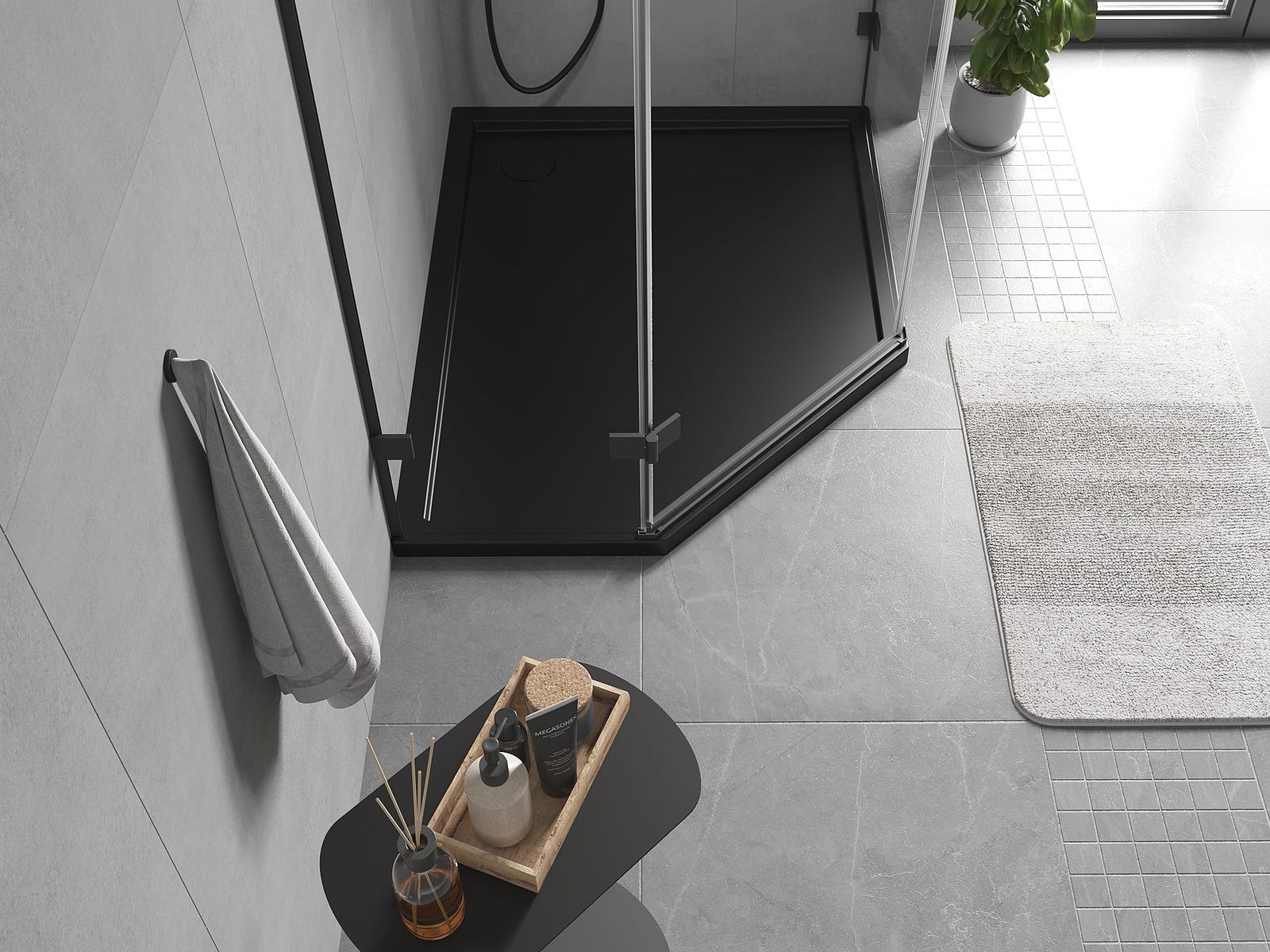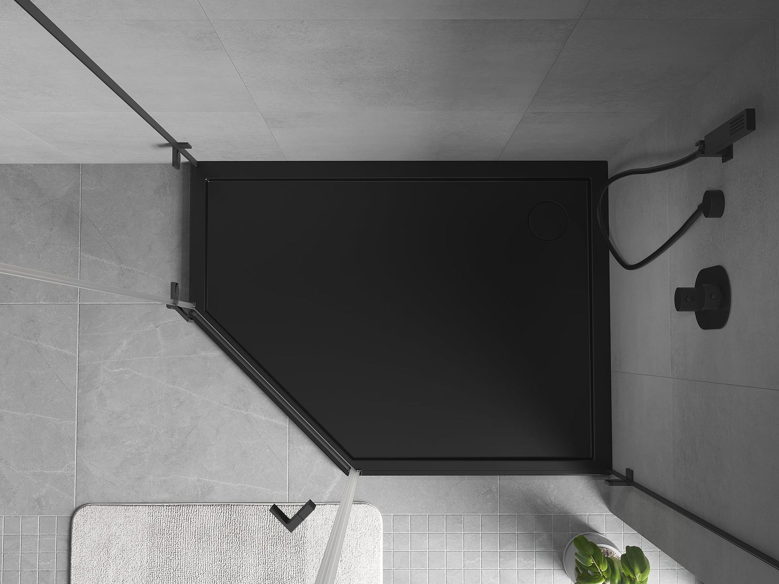 Mexen Flow base de duche pentagonal slim direita 90 x 80 cm, preto mate - 46P708090R