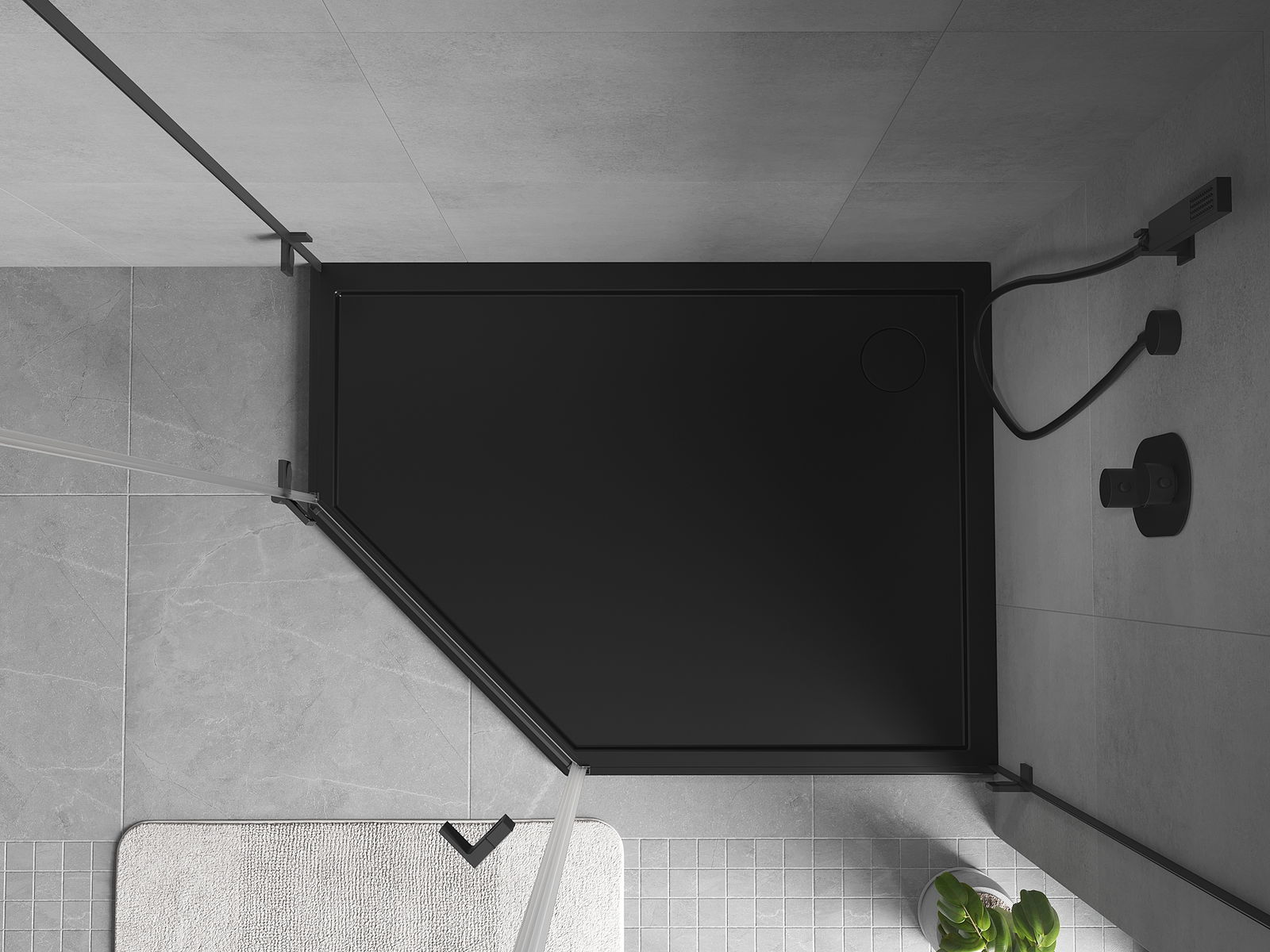 Mexen Flow base de duche pentagonal slim direito 100 x 80 cm, preto mate - 46P708010R
