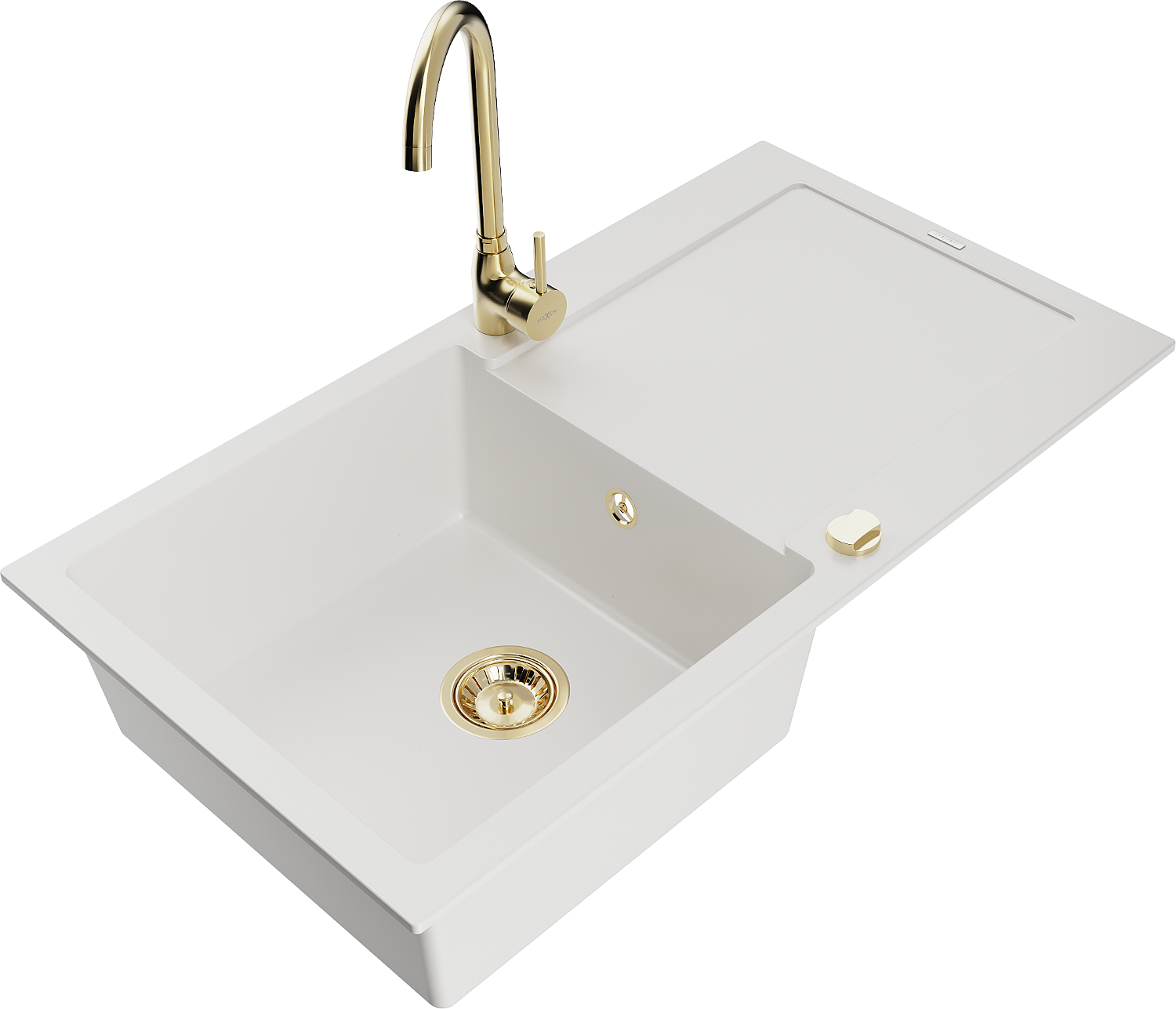 Mexen Leo lava-loiça de granito de 1 cuba com escorredor e torneira de cozinha Telma, branco - 6501-20-670200-50