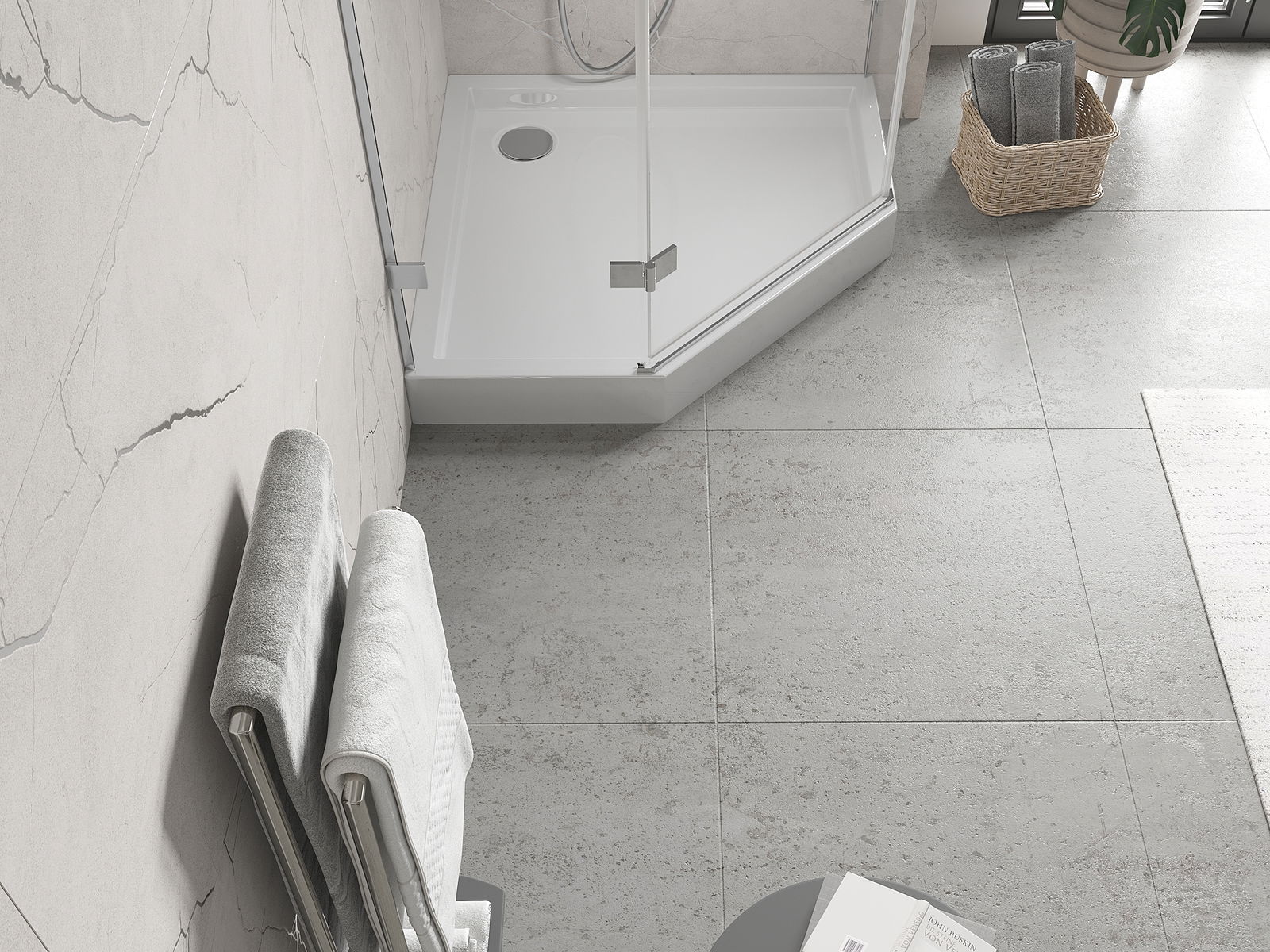 A base de duche foi concebida de forma a permitir que a água escoe livremente na direção do ralo. Assegura uma drenagem rápida e eficiente da água da superfície da base de duche, prevenindo a formação de poças e o alagamento da casa de banho.