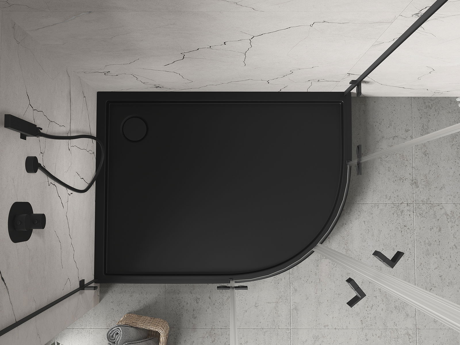 Mexen Flow+ base de duche semicircular assimétrica esquerda 100 x 80 cm, preto mate - 46Q708010LH